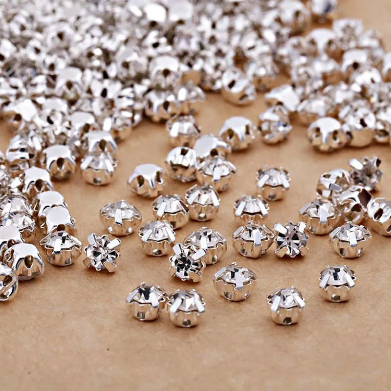 Новинка 3 мм 4 мм 5 мм 6 мм 7 мм 8 мм серебряные когти Пришивные круглые стразы для рукоделия сделай сам стеклянные кристаллы Камни одежда свадебное платье