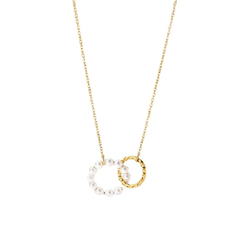 Ожерелье ALLNEWME женское повседневное из искусственного жемчуга и бусин, колье с полым круглым кулоном, тонкая цепь золотистого цвета, ювелирное изделие