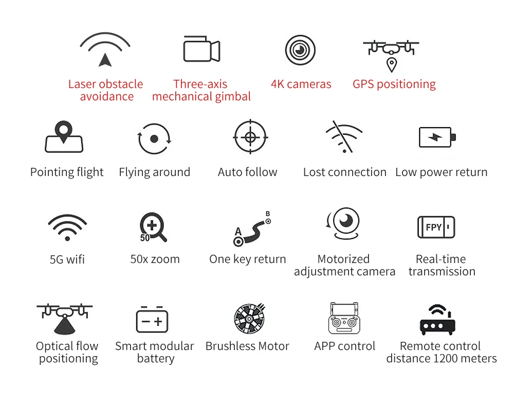 Установите несколько датчиков в одном, используйте многожильный «сердечник» для управления мощной производительностью!Быстро выполните инструкцию, не можете получить gps-сигнал и вернуться домой разумно!Фронтальная/Нижняя камера, поддерживает съемку без переключенияОдноклавишный переключатель с двумя линзами