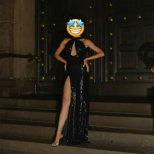 Сексуальные длинные черные вечерние платья с блестками и разрезом, ТРАПЕЦИЕВИДНОЕ ПЛАТЬЕ С Лямкой на шее, вечернее платье для женщин