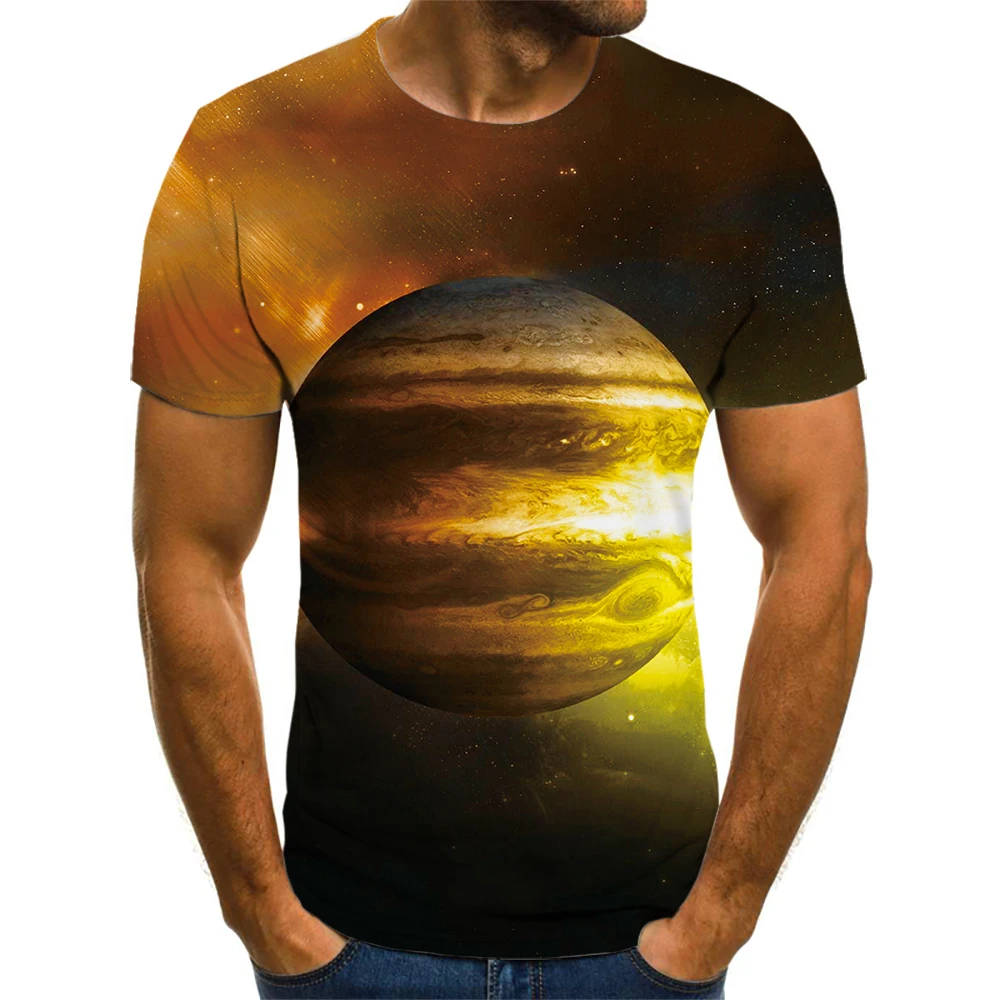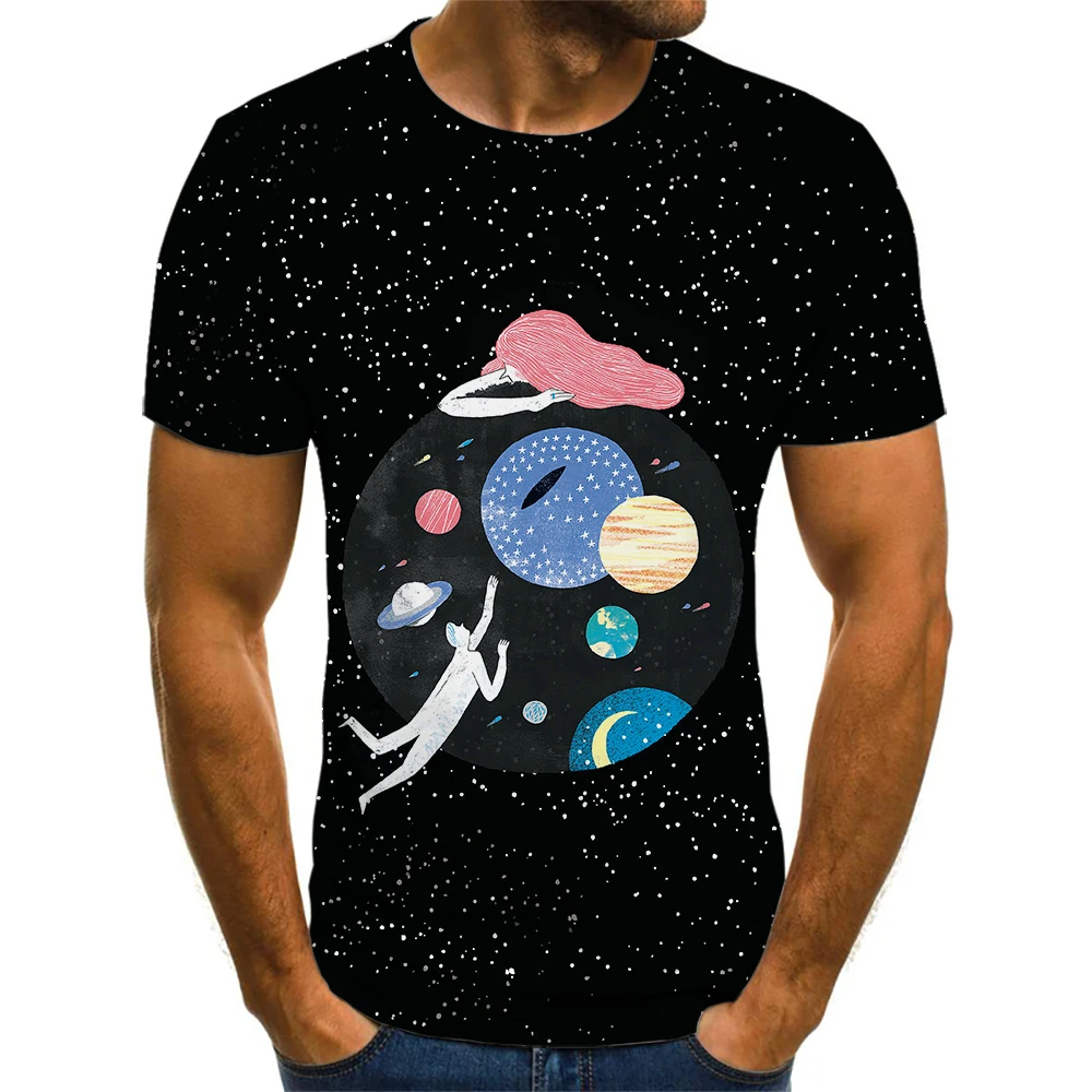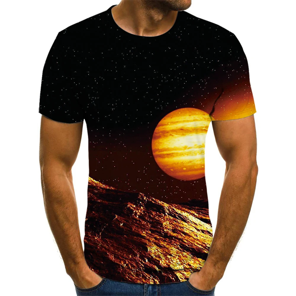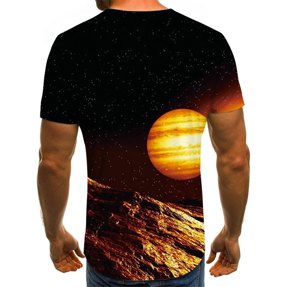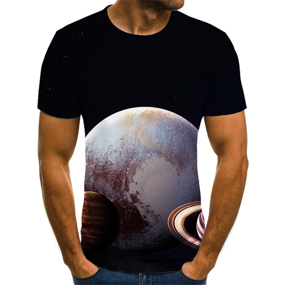 Новинка лета 2021, модная рубашка с круглым вырезом и 3D принтом темной планеты, блузка с коротким рукавом, уличная Фотографическая футболка