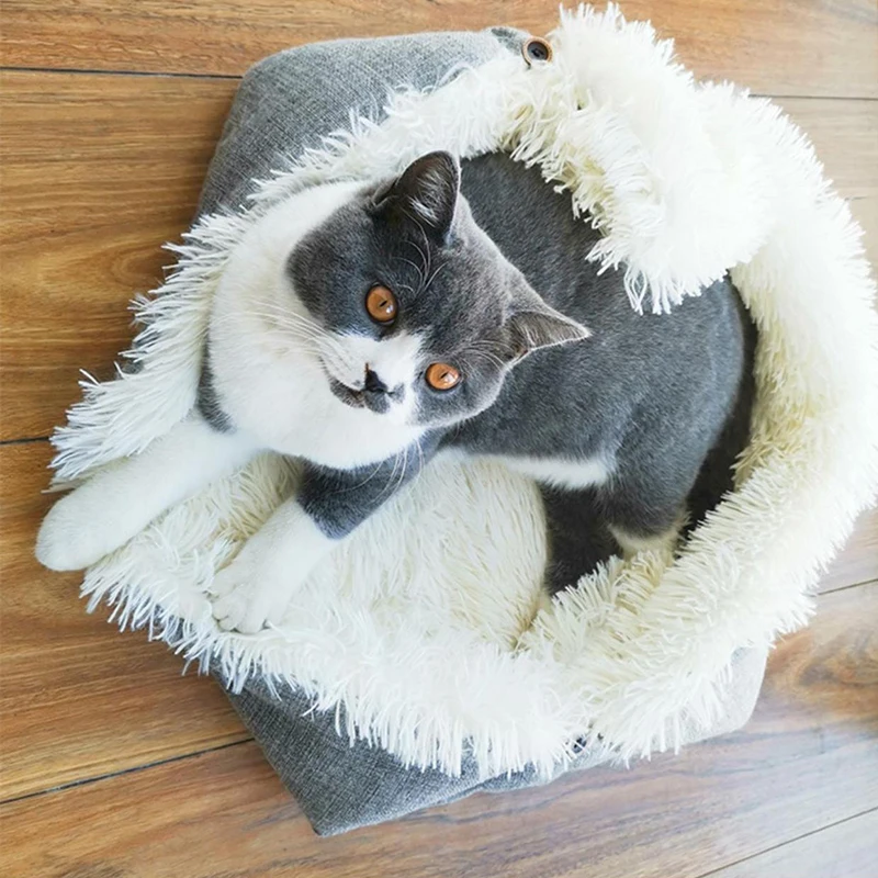 Двухцелевой, раскладной плюшевый коврик для домашних животных, который можно легко сложить в кровать