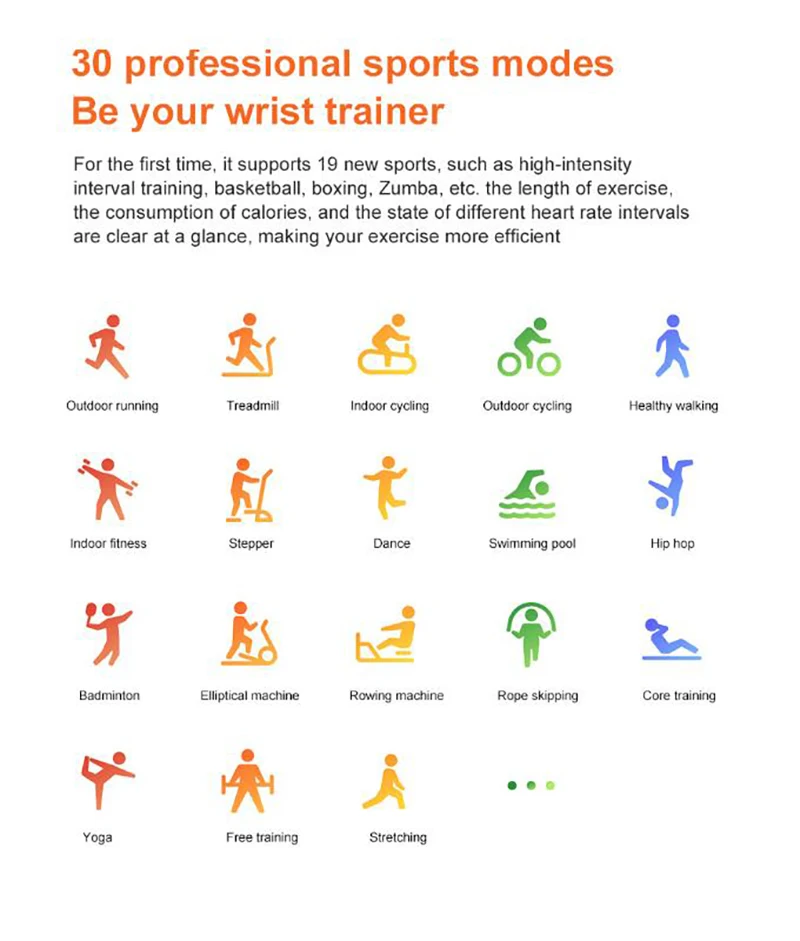 Фитнес-тренажер на запястьеБолее 30 профессиональных спортивных режимов