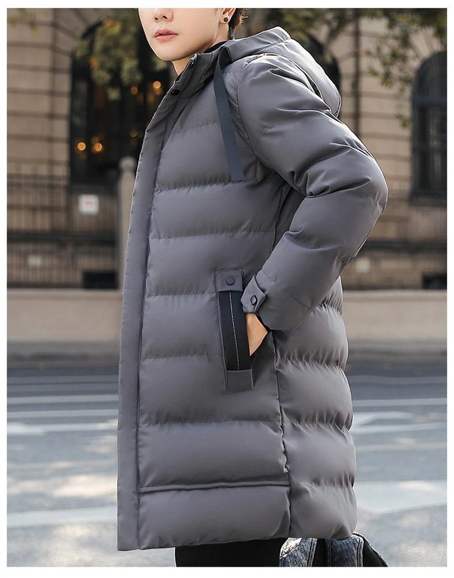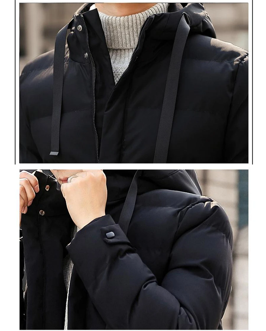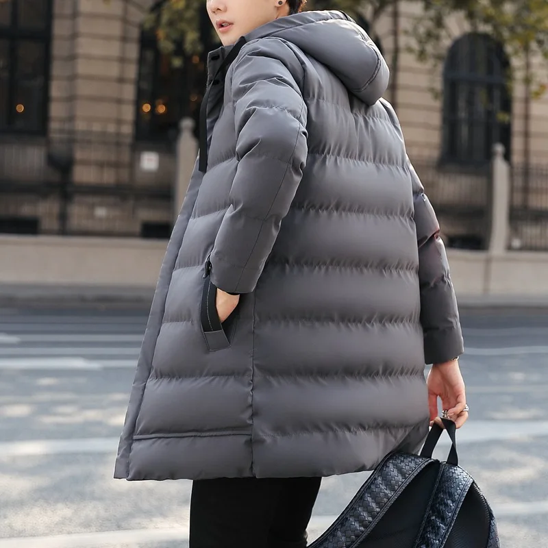 FOJAGANTO Мужская японская Корейская зимняя новая парка однотонная Повседневная приталенная куртка с капюшоном и хлопковой подкладкой Молодежные теплые парки для мужчин