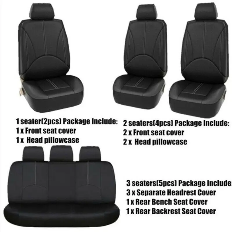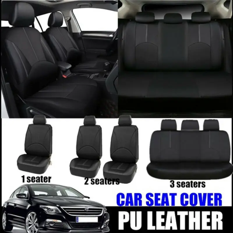 Чехлы из искусственной кожи для автомобильных сидений, универсальные накидки на передние и задние сиденья, черные аксессуары для авто, 9 шт.