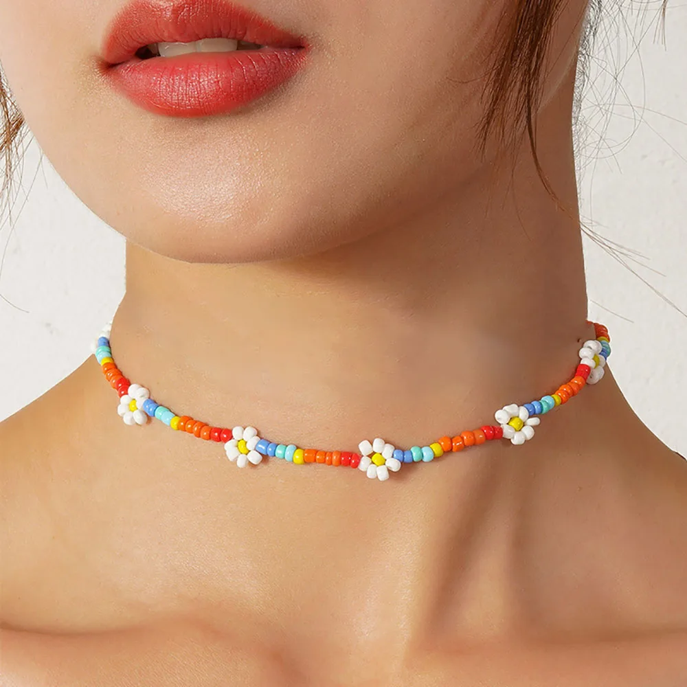 Модное роскошное ожерелье с цепочкой из бисера с цветами для женщин, женская Маргаритка, трендовая бижутерия в стиле бохо, подарок на воротник