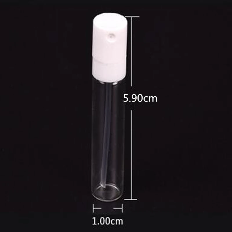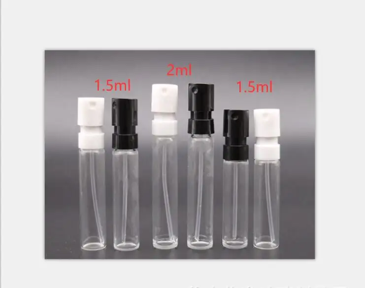 1,5 мл Размер стеклянной бутылки: 10x40 мм. С распылителем высотой 55 ммРазмер стеклянной бутылки 2 мл: 10x45 мм. С распылителем высотой 60 мм