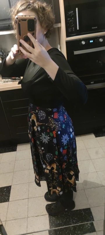 Платье как на фото. Материал платья: лайкра для верха и полиэстер для низа Я поставил м, и я выбрал м для размера, и это очень хорошо (просто рукав немного короткий) Подробное Отслеживание заказа С другой стороны, у него есть проблема, потому что я выбрал тот с подарками и оленями, и я получил тот с печеньями, поэтому разочарован