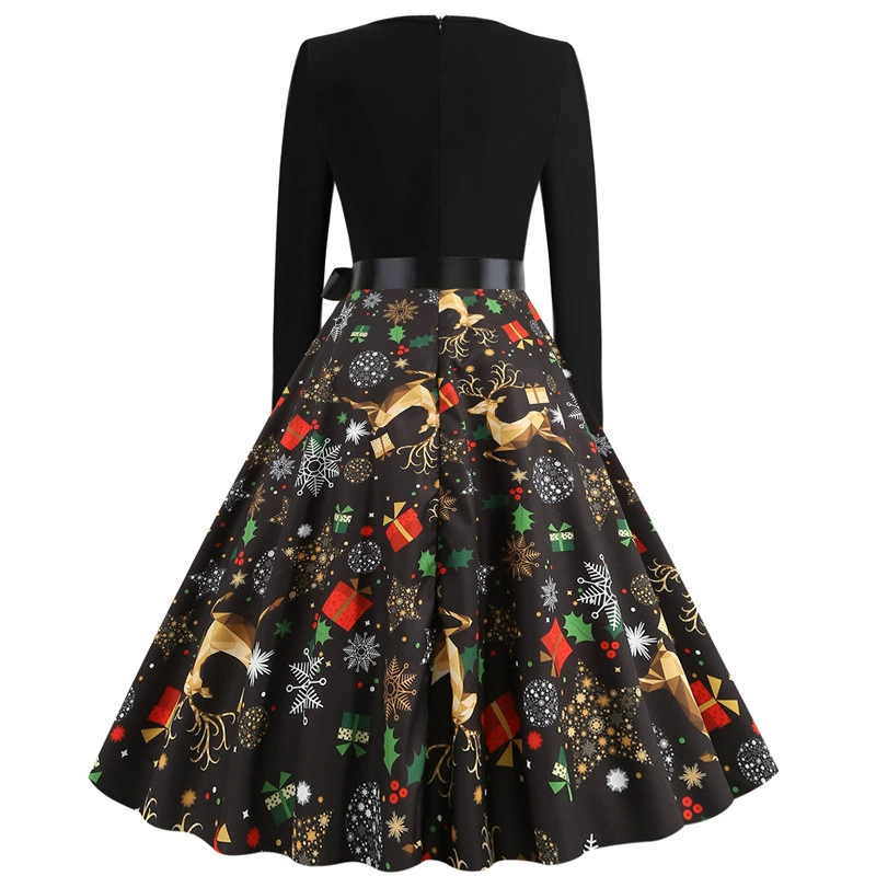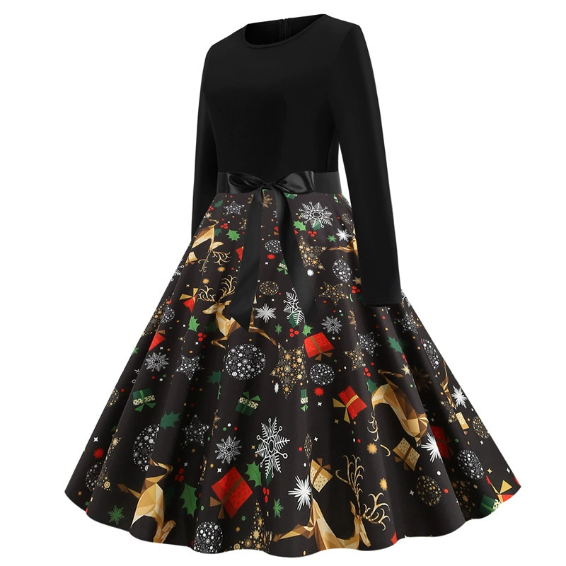 Женское винтажное платье-качели junxi WAN, Черное вечернее платье с круглым вырезом, с длинным рукавом, с длинным подолом в стиле 50-60-х, зима 2022