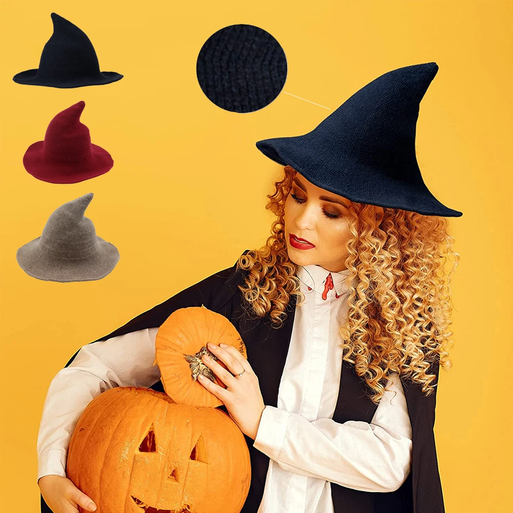 Хэллоуин, Современная шляпа ведьмы, складной костюм, острые остроконечные шерстяные фетровые шляпы вечерние, шляпа ведьмы, теплая осенне-зимняя шапка для женщин и мужчин