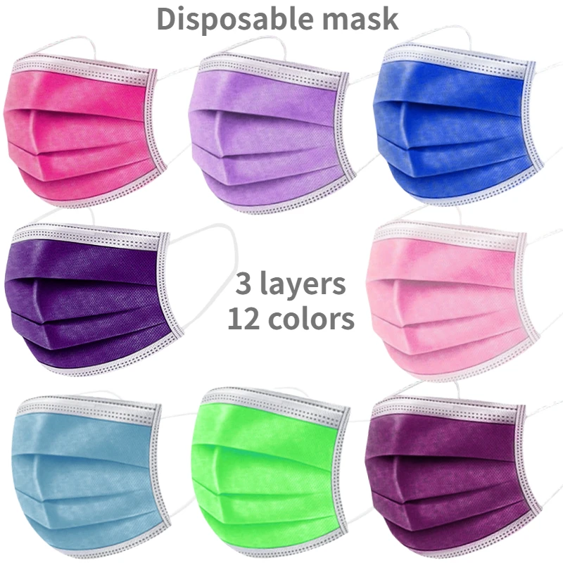 Одноразовая Нетканая 3-слойная маска с фильтром, 10-100 шт., фиолетовая, розовая, фруктовая, зеленая маска для лица, дышащая фотомаска для взрослых