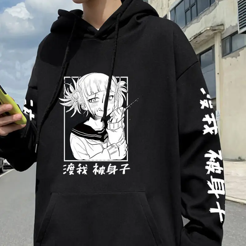 Толстовка с капюшоном в стиле аниме Моя геройская Академия, Повседневный пуловер, свитшоты в стиле боку, химико Тога, мужские топы с капюшоном и принтом унисекс