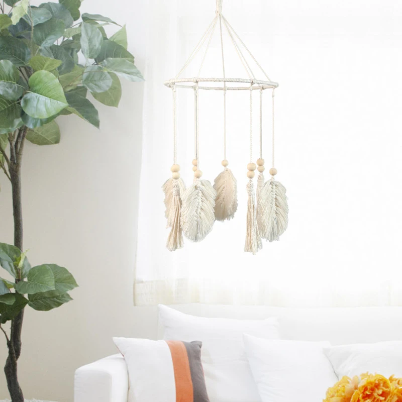 Тканые листья с кисточками ветряные колокольчики гобелен Декор для спальни палатки для детской комнаты подвесное украшение подвесной ветровой колокольчик украшения для кроватки