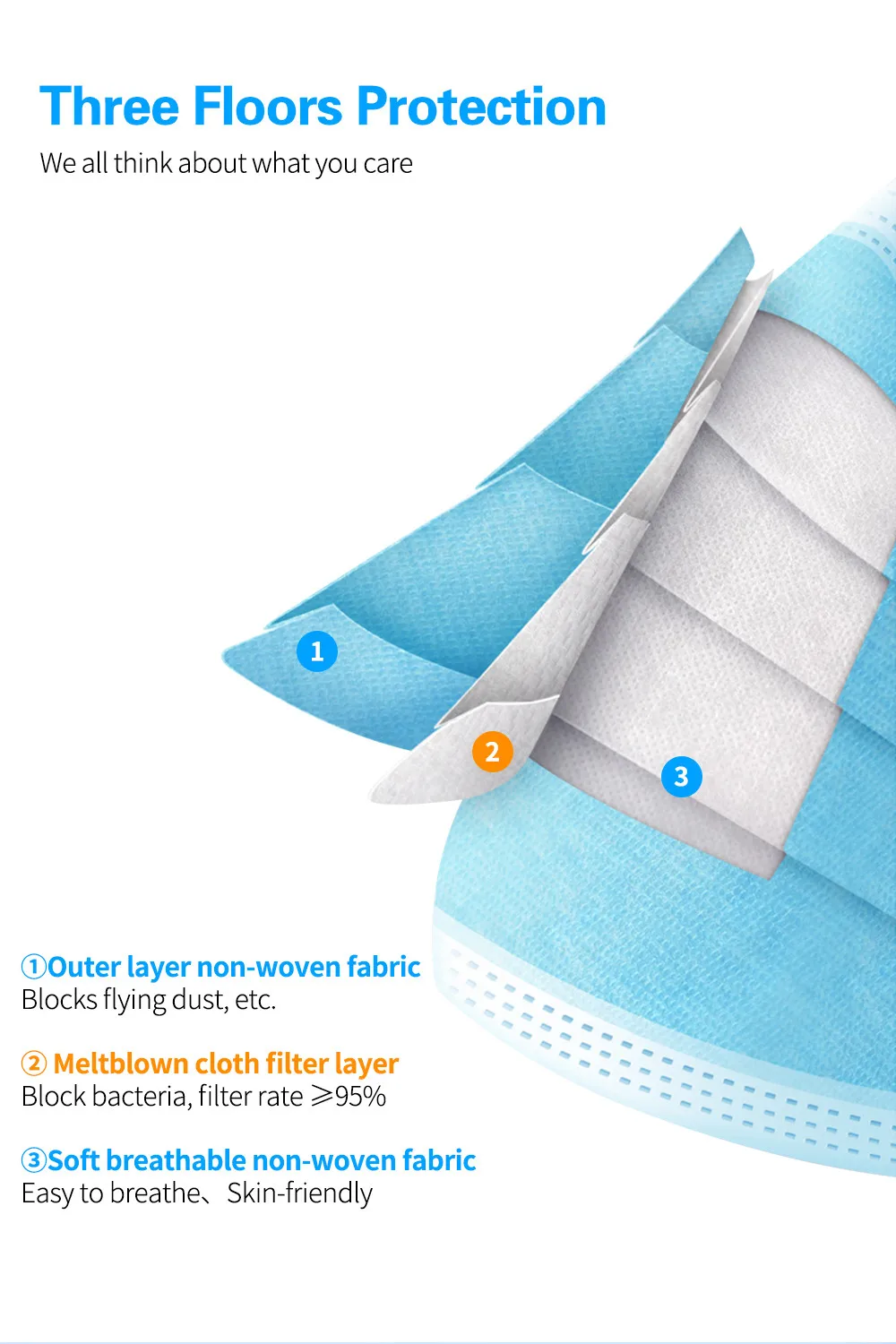 Одноразовые медицинские маски Nonwove 3 Слои слоев фильтр Маска мед...