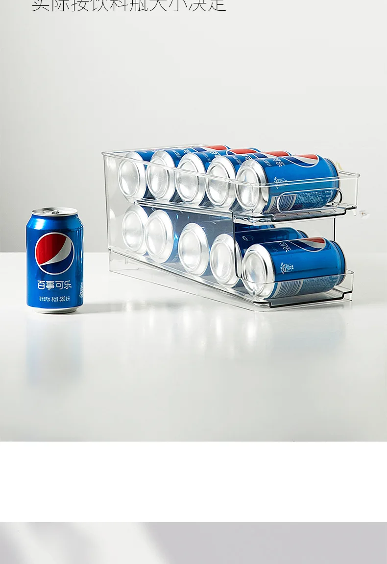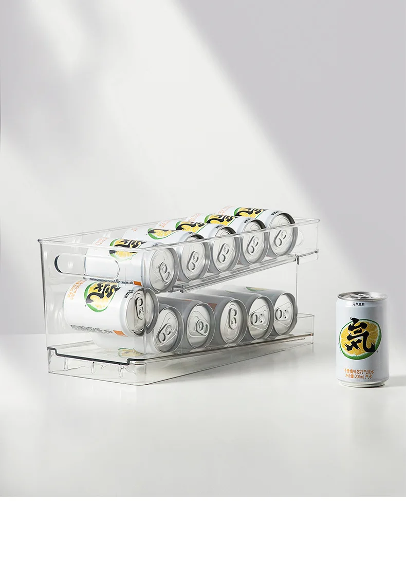 Двухслойная прозрачная самовращающаяся стойка для хранения напитков, банки для пива, колы, газировки, стандартная коробка для хранения в холодильнике