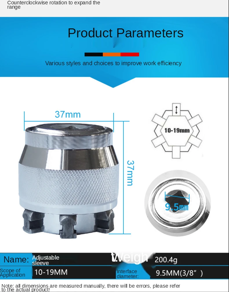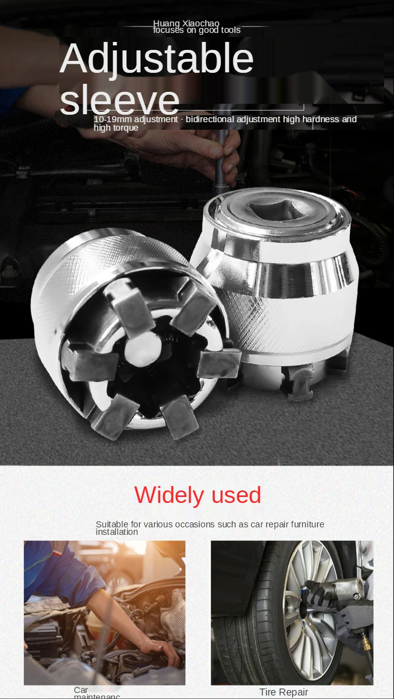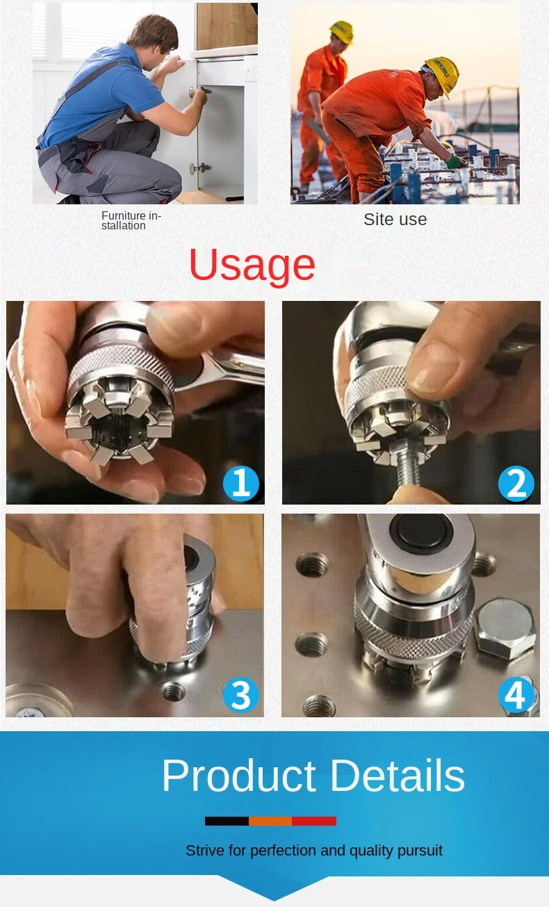 Был профессионально разработан, чтобы работать как традиционные розетки, но в одном удобном инструменте. В отличие от ограничительных гнезд контактного типа, он легко обрабатывает высокие torques, плотно и правильно захватывает любые гайки и болты в пределах постоянно регулируемого диапазона размеров. Mintiml торцевой ключ: Поддерживает даже равную силу со всех сторон крепежа, предотвращающую закругленные углы. Легко захватывает и удаляет поврежденные, закругленные и ржавые гайки и болты. Гаечный ключ с регулировкой гнезда: Заменяет более 30 гнезд от 3/8 "до 3/4" и от 10 до 19 мм. Подходит для любого стандартного 3/8 "приводного ключа. Захватывает и легко удаляет поврежденные, закругленные и ржавые гайки и болты. Жесткий торцевой ключ: Легко обрабатывает высокие torques, твердые и должным образом захватывая любые гайки и болты в пределах его непрерывно регулируемого размера. Универсальный торцевой ключ: Отрегулируйте сразу, чтобы захватить большинство гаек, винтов, крючков, винтов, головок болтов и других крепежных деталей нечетной формы, для которых у вас нет подходящего инструмента. Широко используемый торцевой ключ: Набор розеток может быть применен для автомобильной промышленности, бытовой техники, обрабатывающей промышленности, строительства и других отраслей промышленности