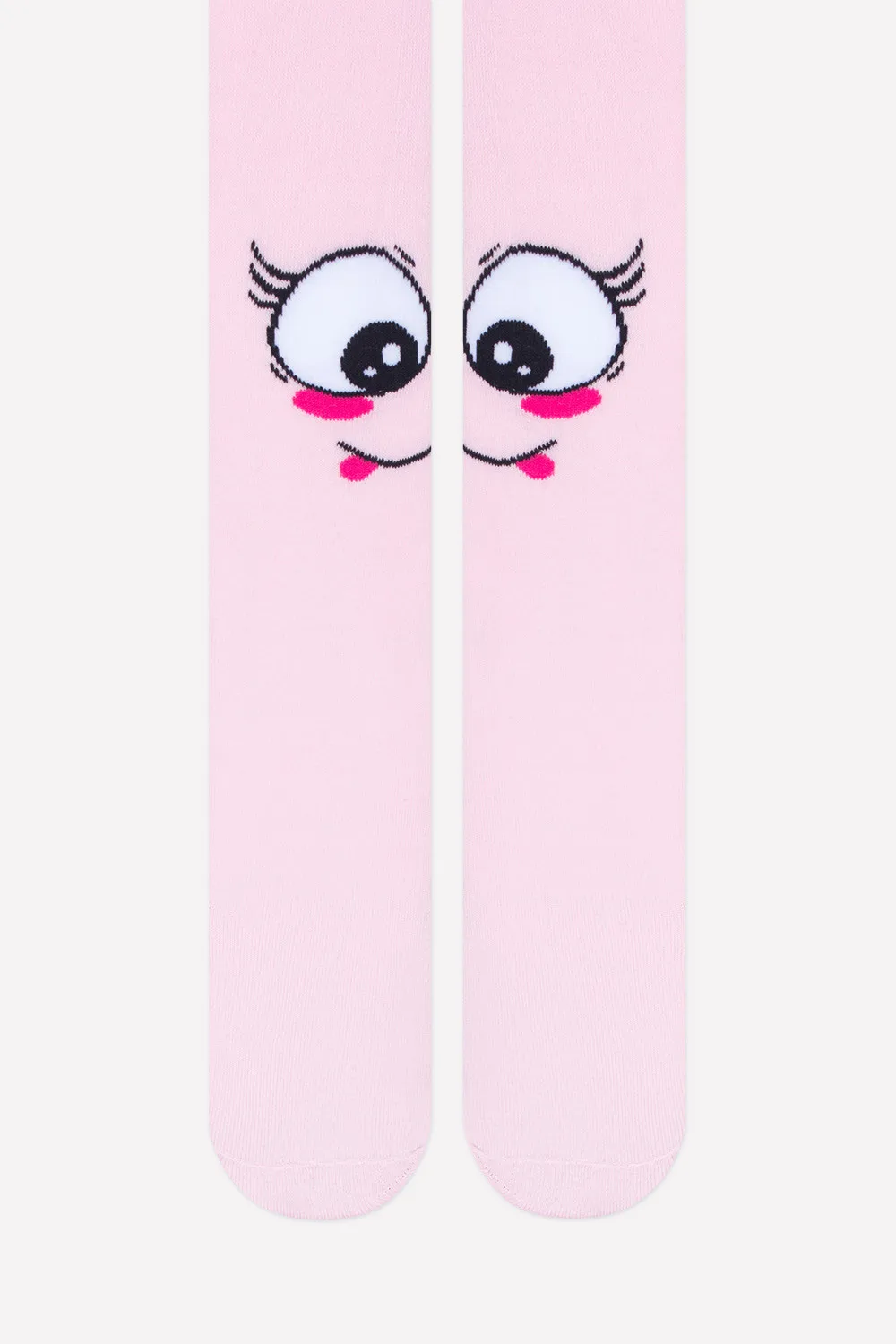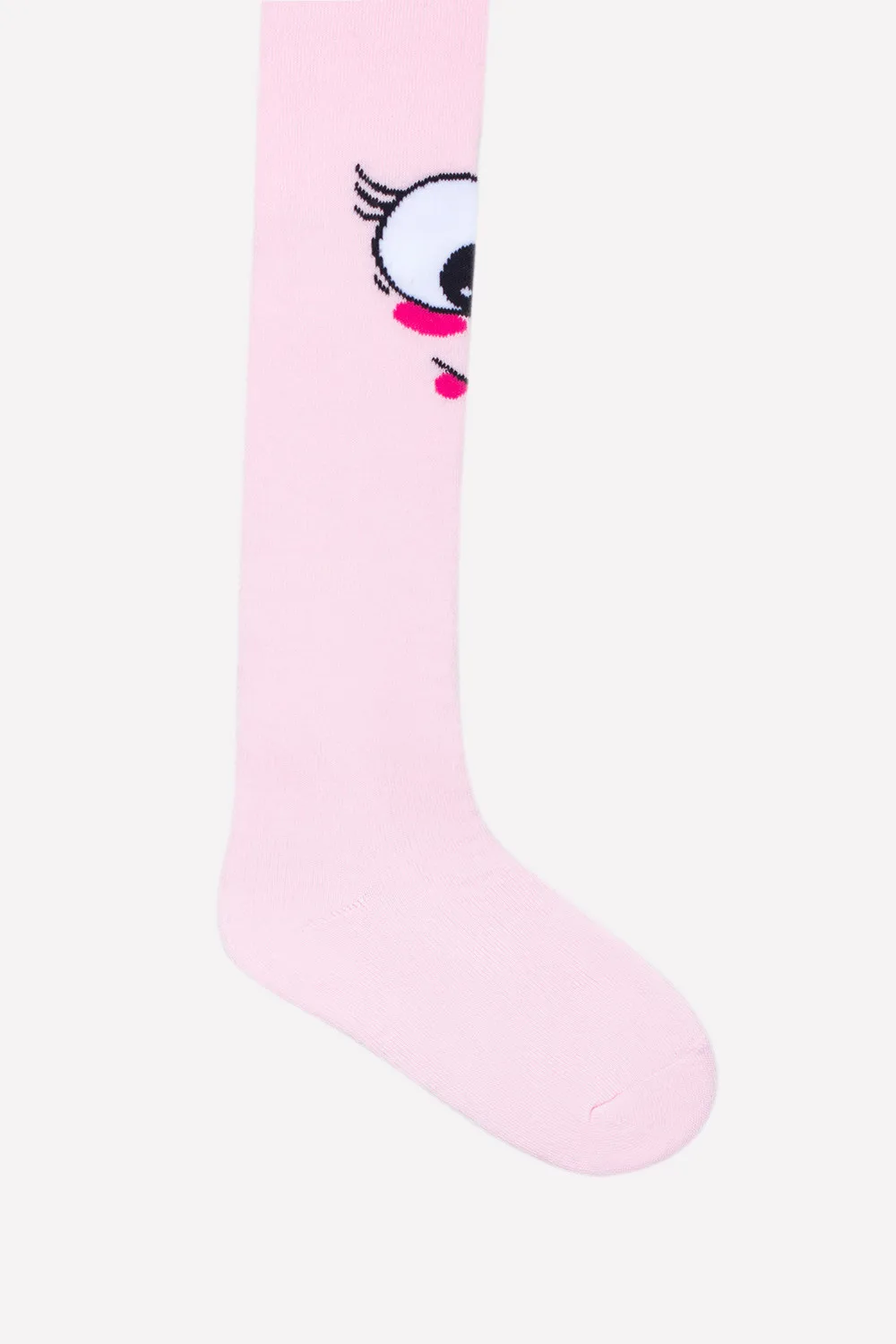 Описание: Колготки для девочки из однотонного смесового хлопка. С задней вставкой и формованной стопой. Махровые с внутренней стороны. В поясе эластичная резинка. В области колена рисунок.