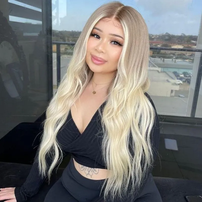 Парик женский пепельный блонд, волнистый, плотность 250, с эффектом деграде