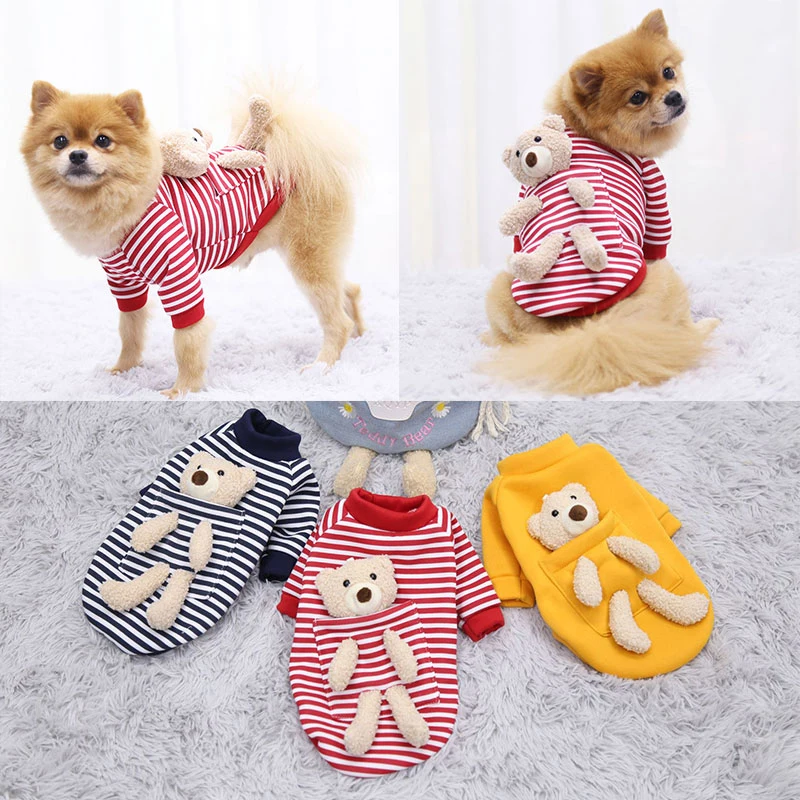 Осенне-зимняя одежда для собаки с милым плюшевым медведем щенком полосатая Толстовка модный свитер для собаки мультяшный медведь Повседневные Товары для домашних животных