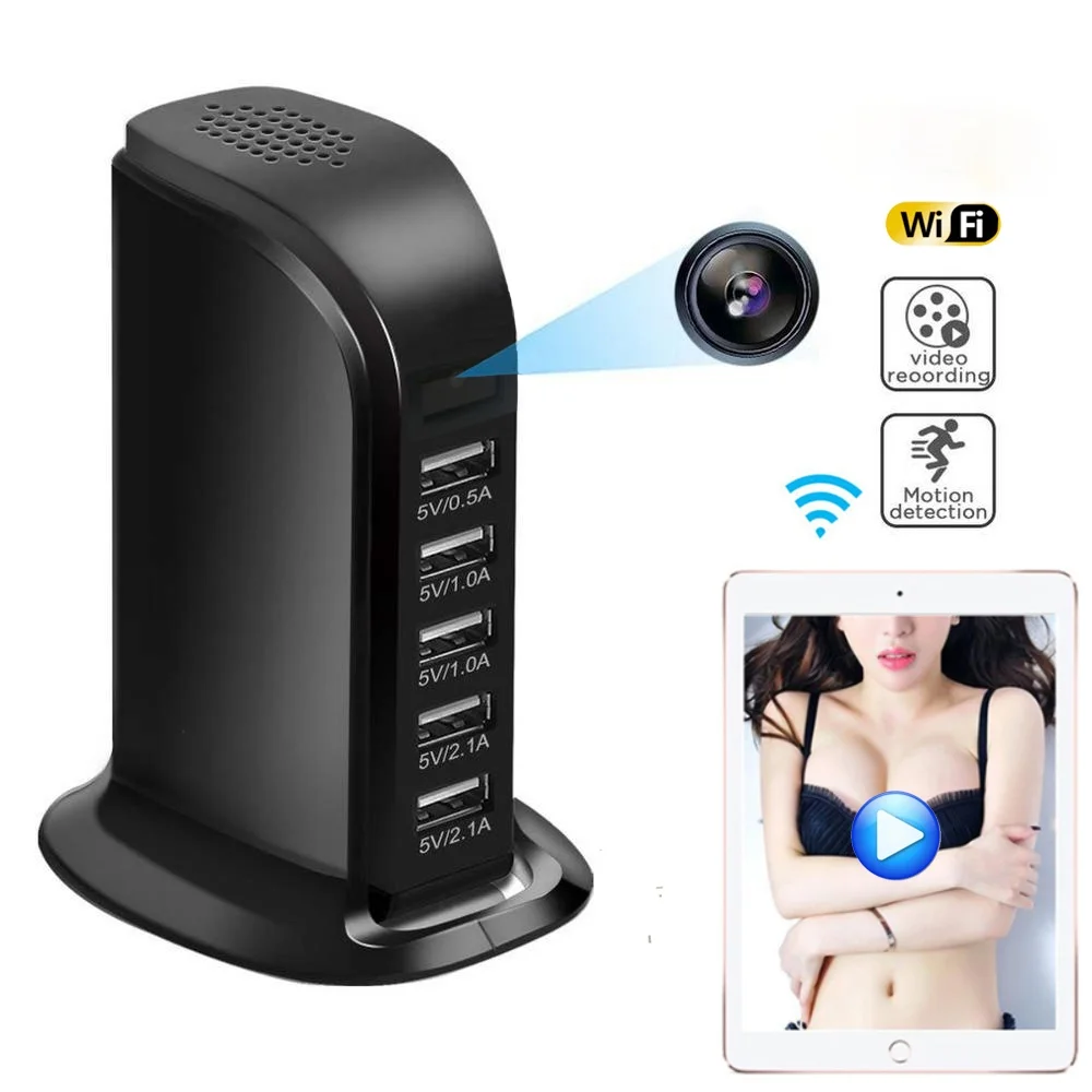 Особенности: 1. Ультра HD объектив камеры, более четкий. 2. Сжатые файлы, больше места для хранения. 3. Запись видео в формате Full HD 1080P. 4. Высокая емкость хранения данных, максимальная поддержка 128 ГБ (класс 10). 5. Есть видео, запись, обнаружение движения и т. Д. Функции. 6. Обнаружение движения, не пропустите замечательный момент. Описание: Этот продукт представляет собой зарядное устройство высокой четкости 1080P @ 25 frame WIFI с внешней SD/TF картой памяти. Как Многофункциональная камера, Она интегрирует камеру с видеозаписью, обнаружением движения, хранением и 5 разъемами USB, они питаются от AC100-240V. Характеристики: Модель: A9 Разрешение: 1920*1080P Формат видео: AVI Номер оправы: 25 Угол обзора: 90 градусов Расстояние обнаружения движения камеры: 6 метров прямой Минимальное освещение: 1 люкс Время непрерывной записи: 24 часа Сжатый Формат: H.264 Диапазон записи: 5 м fps 2; Мощность Потребляемая мощность: 240MA/3,7 V Температура хранения: -20-80 градусов Цельсия Рабочая температура: -10-60 градусов Цельсия Рабочая влажность: 15-85% относительной влажности Тип карты памяти: tf-карта (не входит в комплект) Программное обеспечение для воспроизведения: Поддержка VLCPlayer/SMPlayer Мобильная операционная система: Поддержка Android/OS Размер изделия: 43*35*25 мм Комплект камеры включает в себя: 1 мини-камера 1 х USB кабель 1 х Руководство