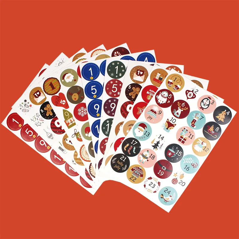 24 шт.компл. Рождественский Адвент-календарь, бумажные наклейки, пе...