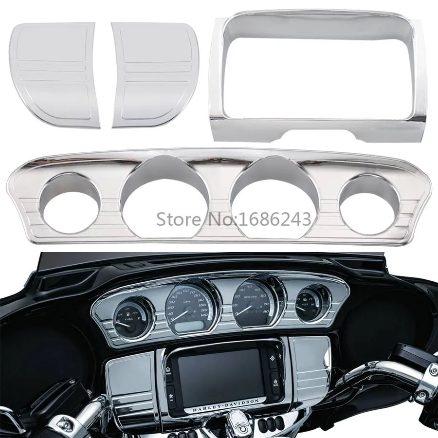 Мотоцикл хромированный внутренний обтекатель Tri-Line Gauge стерео планки акцент медиа ободок для Harley Electra Street Glide Tri Glides 2014 +