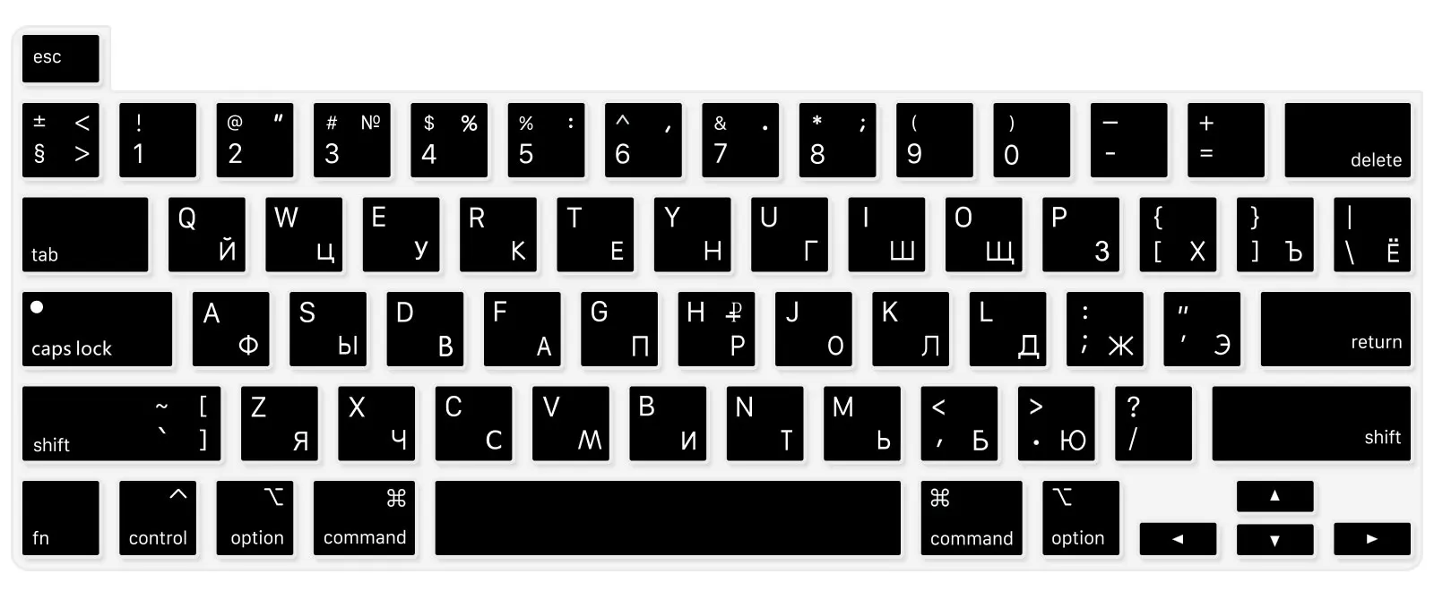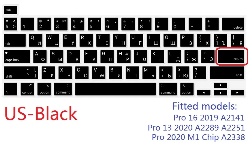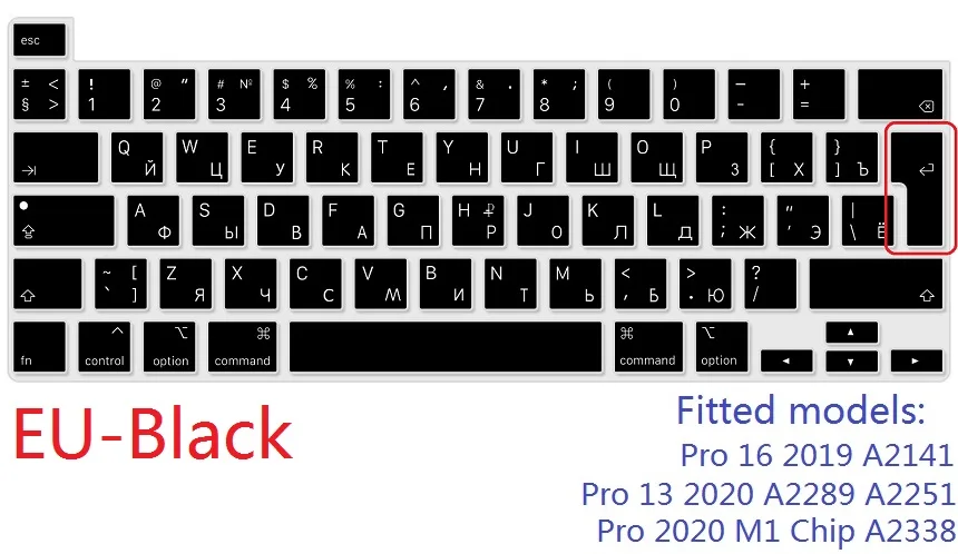 Черная мягкая силиконовая накладка на клавиатуру для Macbook Pro 13 2020 M1 Chip A2338 EU US с русской раскладкой для Macbook Pro 13 M1
