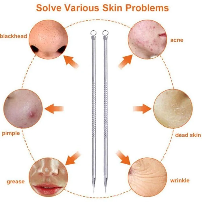 1 шт., многофункциональные инструменты для ухода за лицом из нержавеющей стали с иглой для прыщей, удалитель черных точек, экстрактор прыщей, случайный цвет