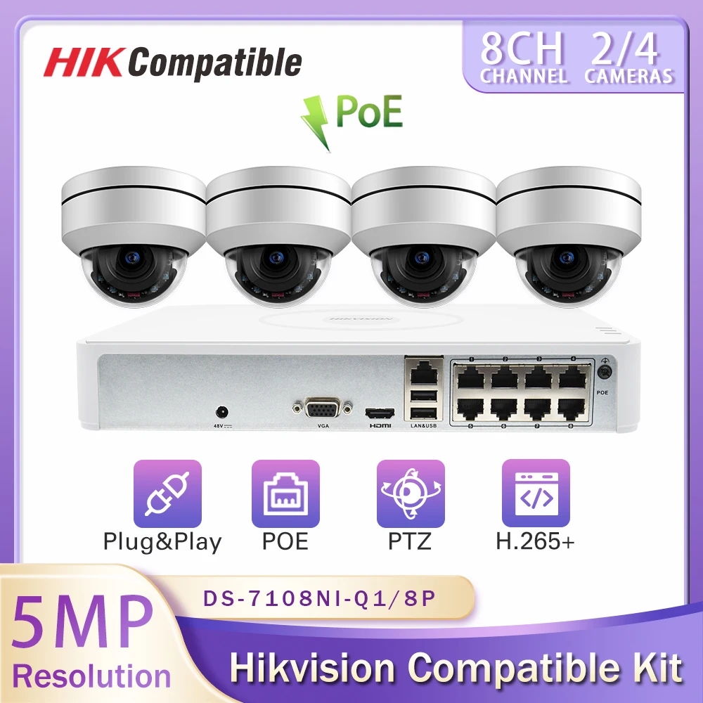 Совместимые с Hikvision комплекты DS-7108NI-Q18P 8CH 8POE NVR 5MP п...