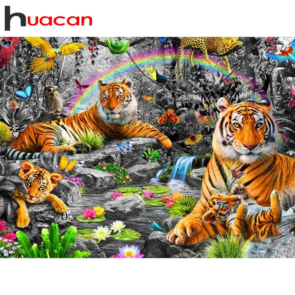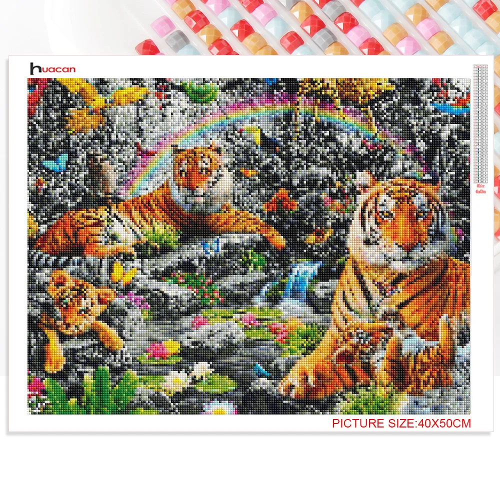 Алмазная живопись Huacan с квадратными стразами, тигр 5D, вышивка, картины ручной работы для дома