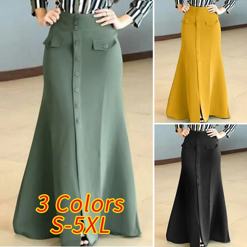 Юбка-макси Женская, с высокой талией, на пуговицах, однотонная