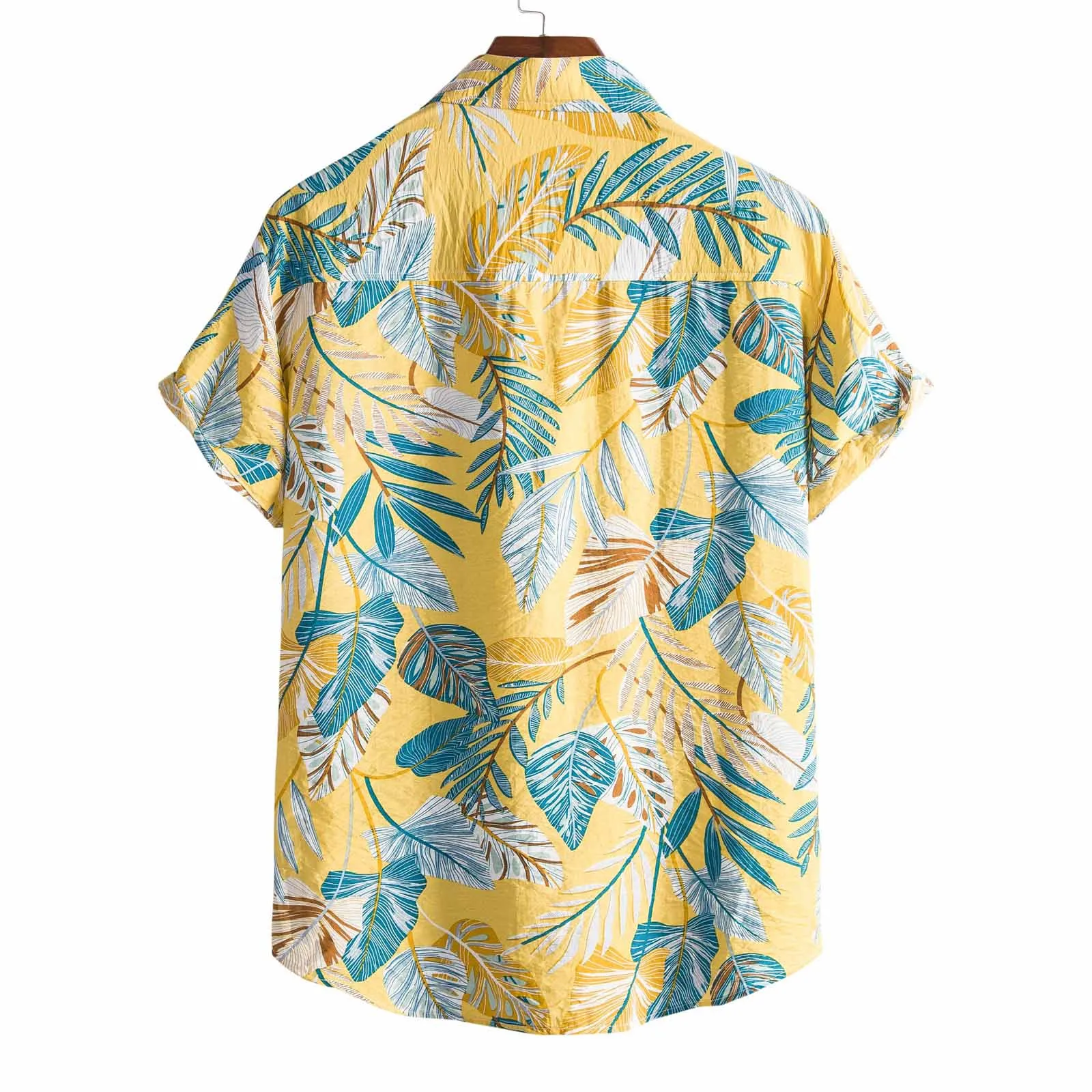 Рубашка мужская с коротким рукавом, свободная пляжная Гавайская блузка на пуговицах, цветная повседневная с принтом, на лето