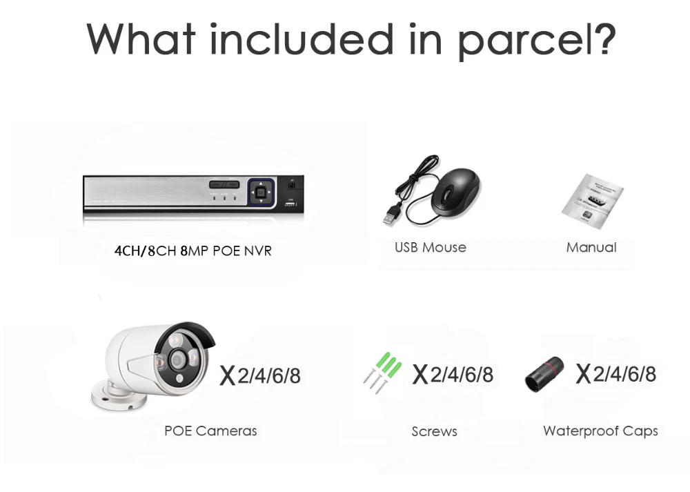 1. Все наши NVR и камеры настоящие H.265 4K 8MP, другие бренды имеют только 4MP или 5MP. Ночные камеры безопасности используют датчик изображения 4K, который обеспечивает исключительно детальное разрешение 4K Ultra HD разрешение video.4K обеспечивает в четыре раза разрешение 1080p с приблизительно 4000 горизонтальных пикселей, обеспечивает максимальный уровень детализации и четкости.2. Все инфракрасные лампы для камеры используют импортированные тайваньские фитили, обеспечивая лучшее ночное видение,3.HDR улучшает четкость видео при контрастном освещении, раскрывая детали в чрезвычайно ярких и темных областях изображения.4.H.265 сжимает видеофайлы без каких-либо заметных различий в качестве, что сэкономит вам много места на жестком диске5. Алюминиевые экстерьеры продлевают срок службы, так что вы можете рассчитывать на годы непереплетенного обслуживания.6. Установка очень проста, подключи и работай, ip-камерам нужен только один кабель ethernet Cat5e для подключения к совместимому NVR для видео, питания и стабильного сетевого подключения.7: региональные Зоны движения: используя NVR, вы можете программировать конкретные Зоны движения, чтобы они были настроены для повышенной чувствительности (количество движения, необходимое для регистрации этого движения) И порог (сколько нужно движения перед созданием движения «Событие»).8.P2P удаленный доступ/многопользовательский: технология P2P позволяет вам просматривать живую ситуацию вашего дома, где бы вы ни находились, только с помощью учетной записи P2P в приложении через ваш смартфон или планшет.9. Поддержка интеллектуального обнаружения движения, оповещения по электронной почте