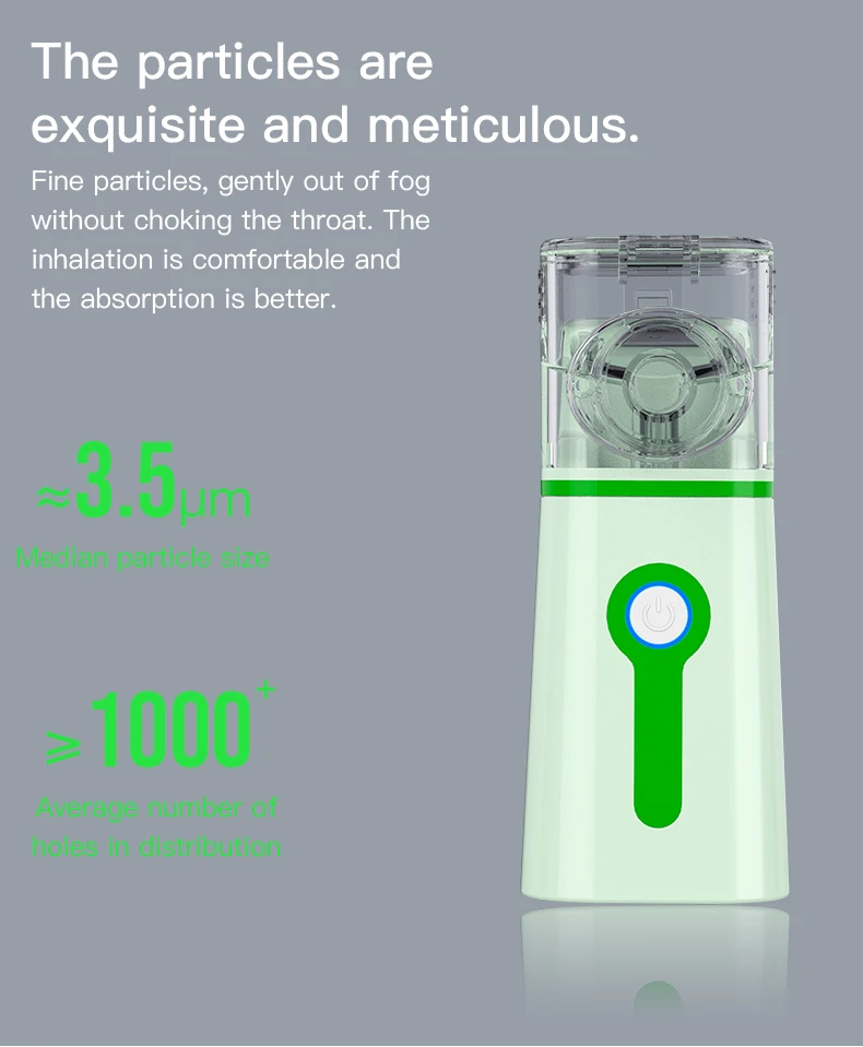 1-5 мкм мелкий туман может проникать глубоко в вашу дыхательную систему естественным образом.Помогает обеспечить паровую терапию при простуде, гриппе, бронхите и других респираторных недугах.Уход за кожей и увлажнение, питательные волосы и т. Д.Подходит для всех возрастов, особенно для детей и пожилых людей.Маленький и портативный, вы можете взять его с собой на ходу.