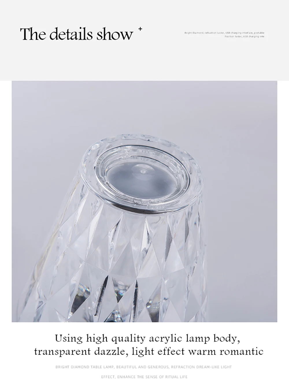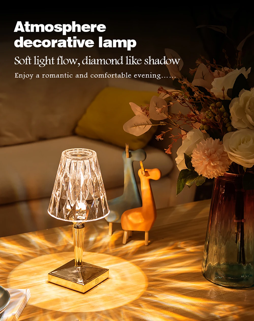 Сенсорная Алмазная настольная лампа, акриловый декоративный светильник с подзарядкой по USB, ночник для спальни, спальни, бара, Хрустальная настольная лампа