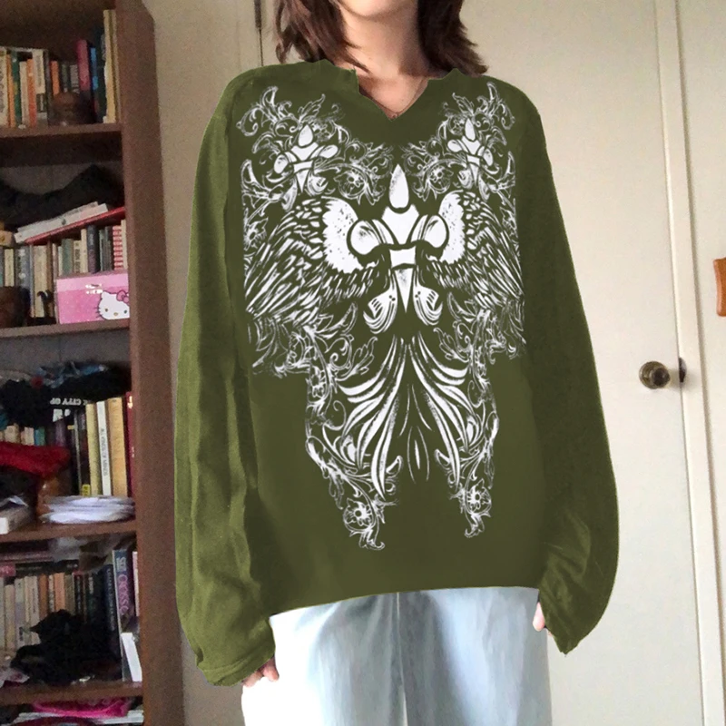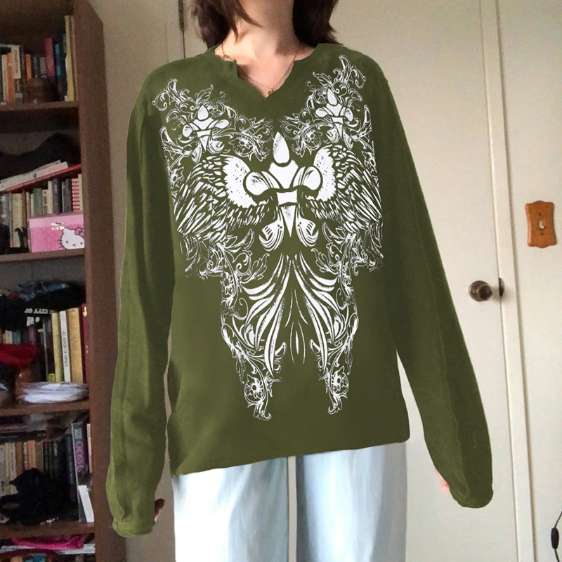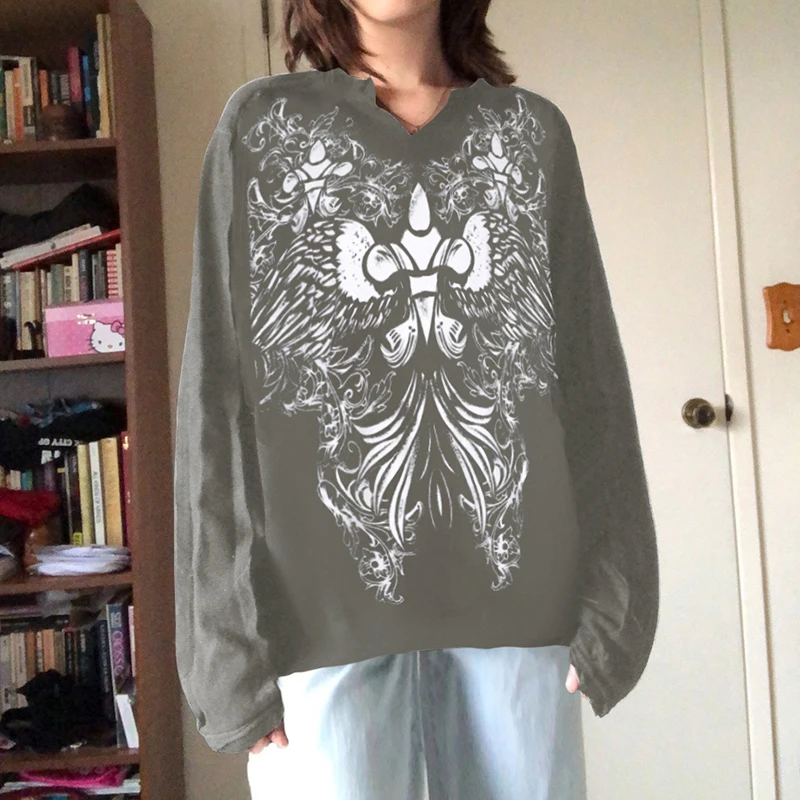Толстовки в стиле Харадзюку, темно-готический графический принт Y2K...