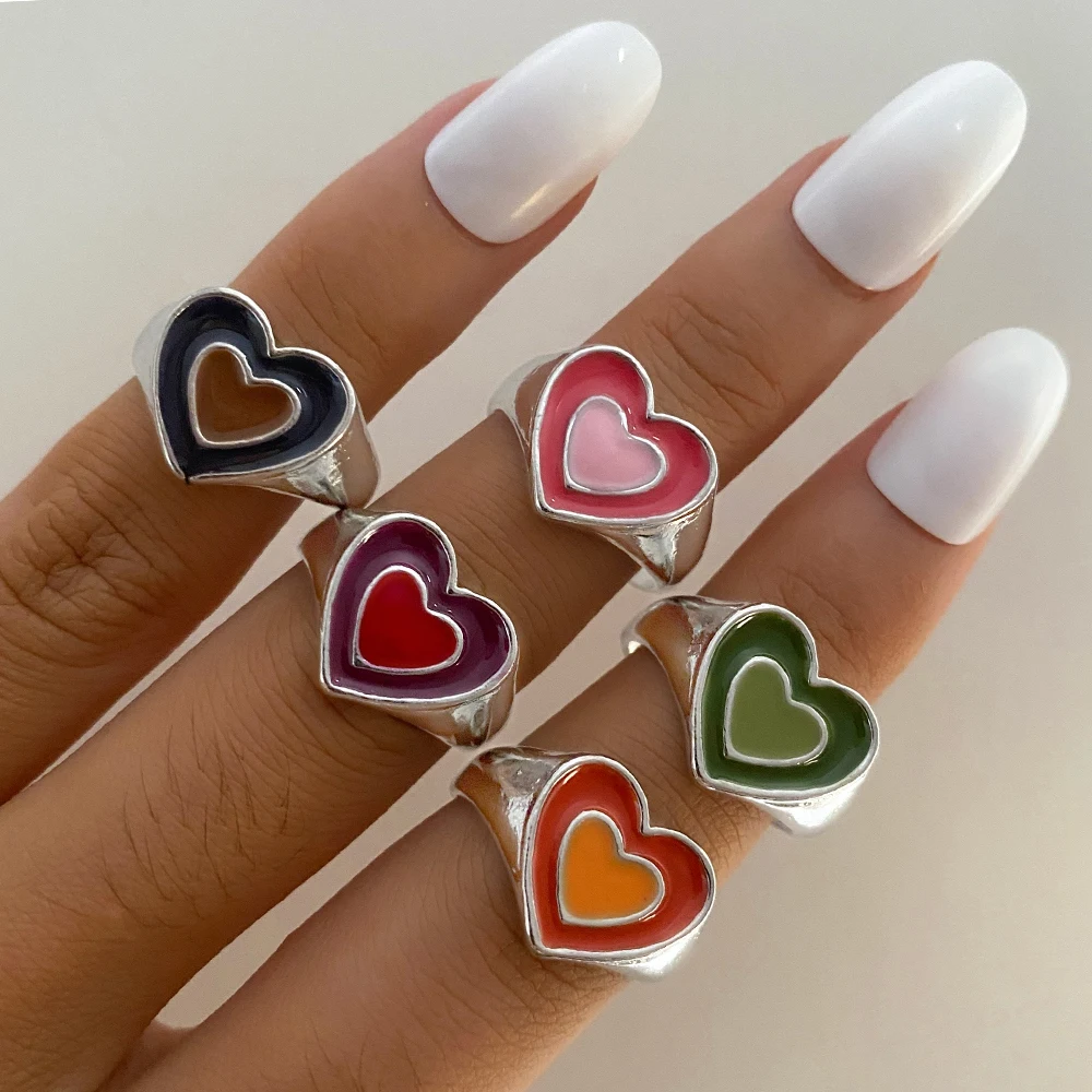 Оптовая продажа, ювелирные изделия Ins y2k, новое красочное кольцо для женщин, кольцо с капающим любовным сердцем, изысканное дикое модное ювелирное изделие