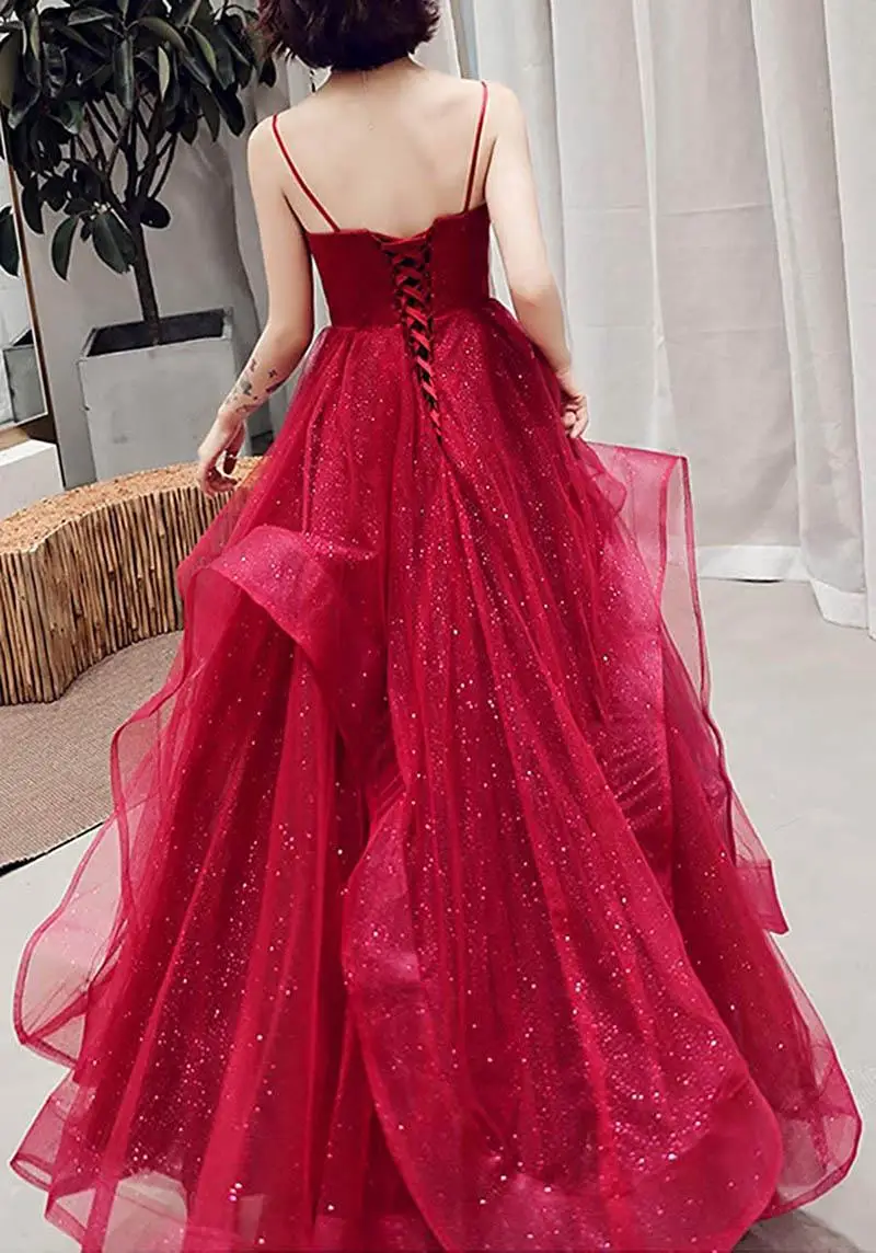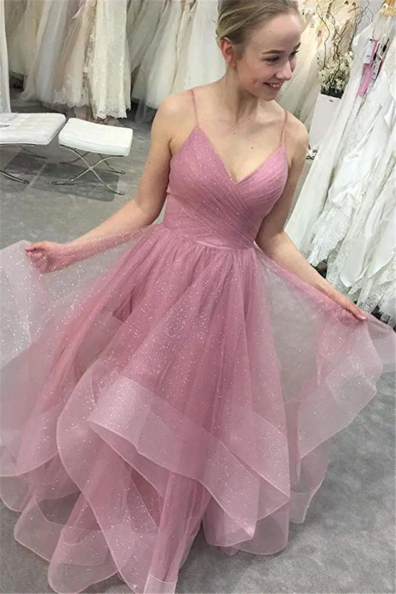 2022 Длинные Романтические вечерние платья для выпускного вечера блестящие тюлевые коктейльные платья на тонких бретельках из сетчатой пряжи