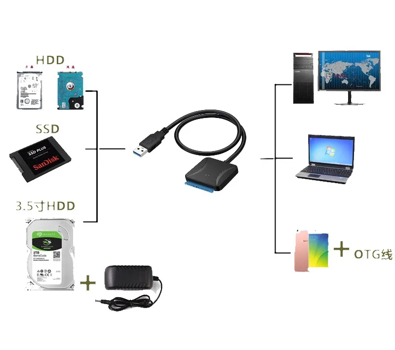 Кабель-переходник с USB 3,0 на Sata, кабель-переходник с SATA на USB 2,5 для жестких дисков Samsung Seagate WD 3,5, адаптер для жесткого диска SSD