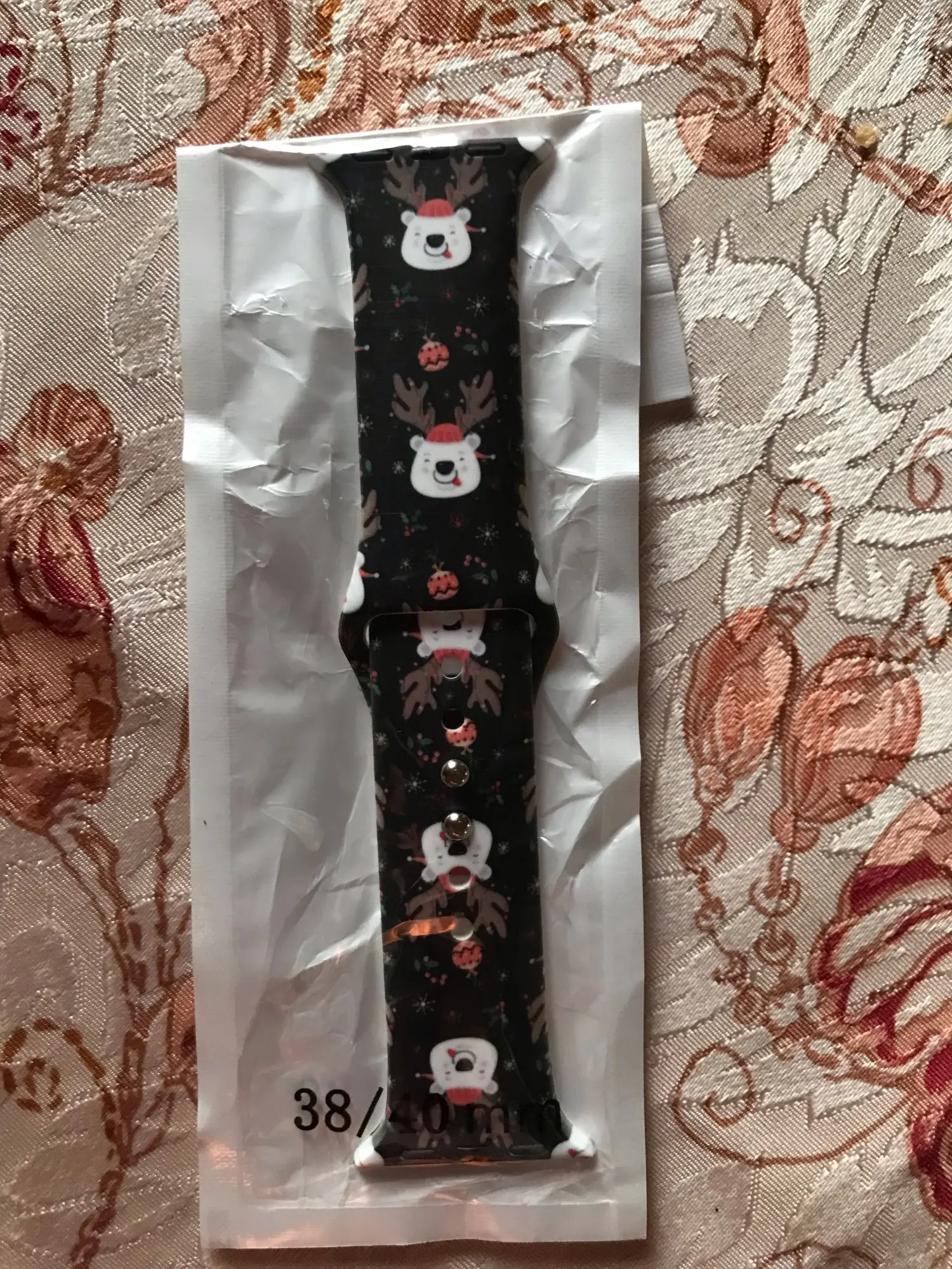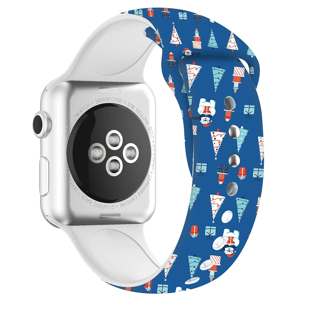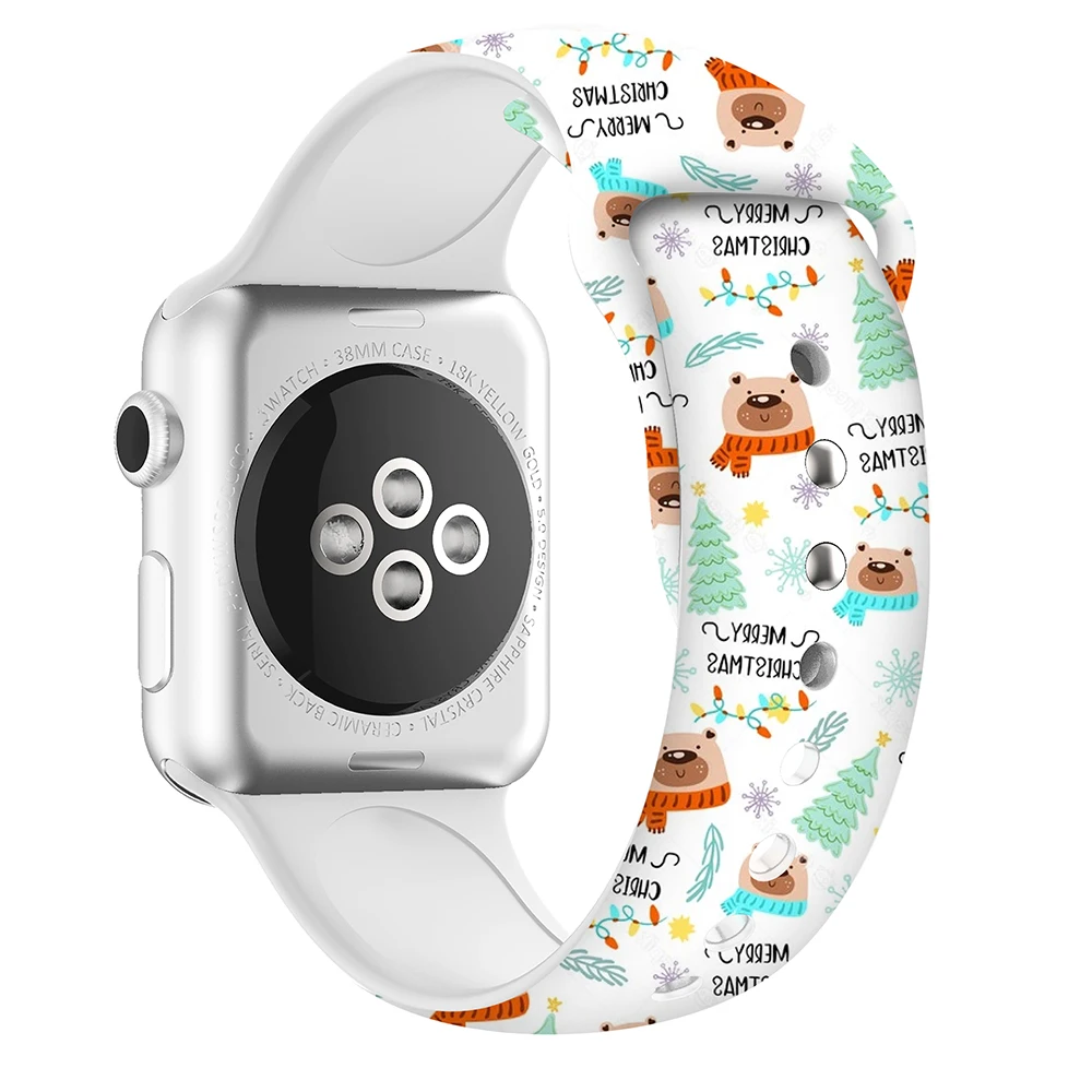 Силиконовый ремешок с рождественским принтом для ремешка для Apple Watch 44 мм, 40 мм, 38 мм, 42 мм, для iWatch Serie 6, 5, 4, 3, 2, 1, резиновый браслет для часов