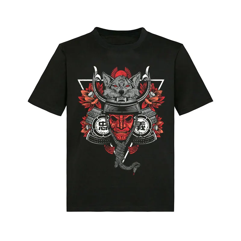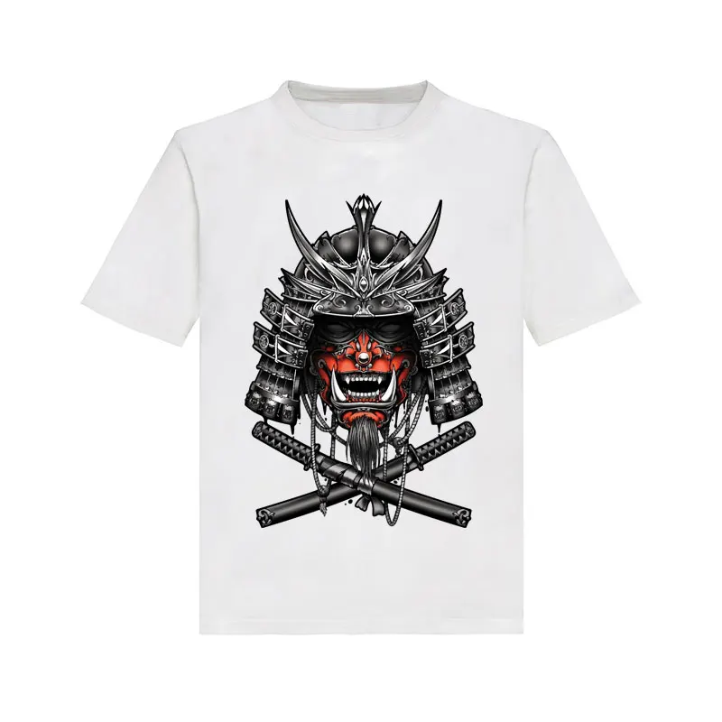 Летняя мужская футболка в стиле самурая с коротким рукавом и круглы...