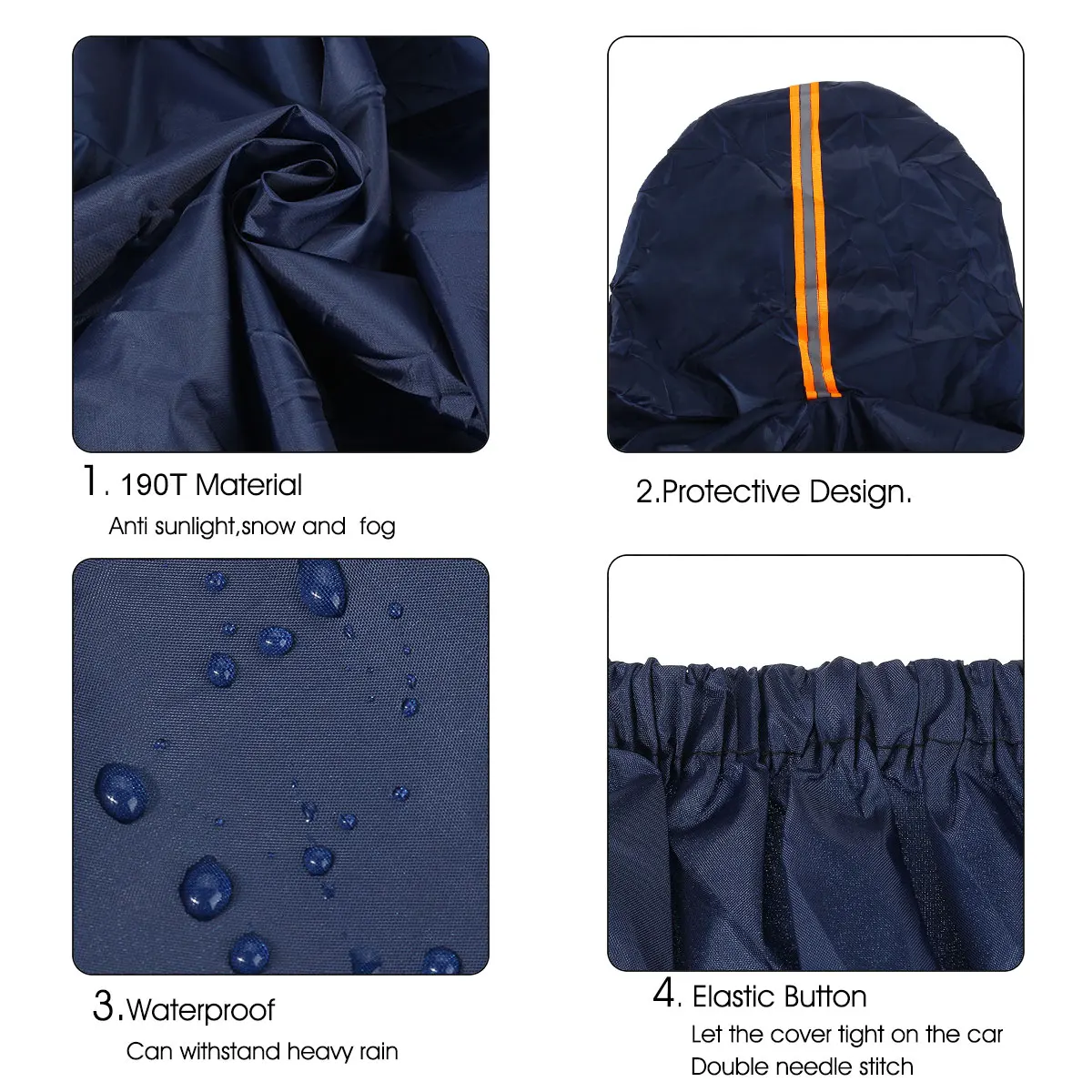 Особенности:1. Идеально подходит для защиты вашего автомобиля от царапин, грязи, пыли и птичьего помета и многого другого, сохраняя ваш автомобиль сухим и чистым.2. Использование на открытом воздухе (уличная парковка) и в помещении3. Отличная защита от дождя, льда и снега. Прочный в экстремальных погодных условиях.4. Используется для солнечного светильник и УФ-отражения.5. Эластичная лента в нижней части надежно фиксирует крышку автомобиля, чтобы предотвратить выдувание покрытия автомобиля ветром.6. Он может защитить поверхность автомобиля от царапин с Ультра толстой подкладкой внутри.7. Сделано из дышащего материала, чтобы избежать попадания тепла и влаги из-под крышки автомобиля.8. Солнцезащитный, пылезащитный, анти-УФ, защита от тепла, устойчивость к царапинам.9. Светильник легко мыть и собирать.