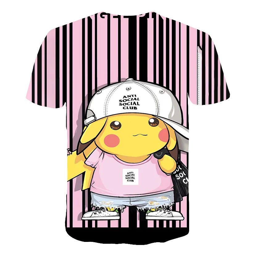 Летняя футболка для мальчиков и девочек с покемоном, 3D печать Пикачу, Детская анимация, модная повседневная футболка с коротким рукавом в стиле Харадзюку