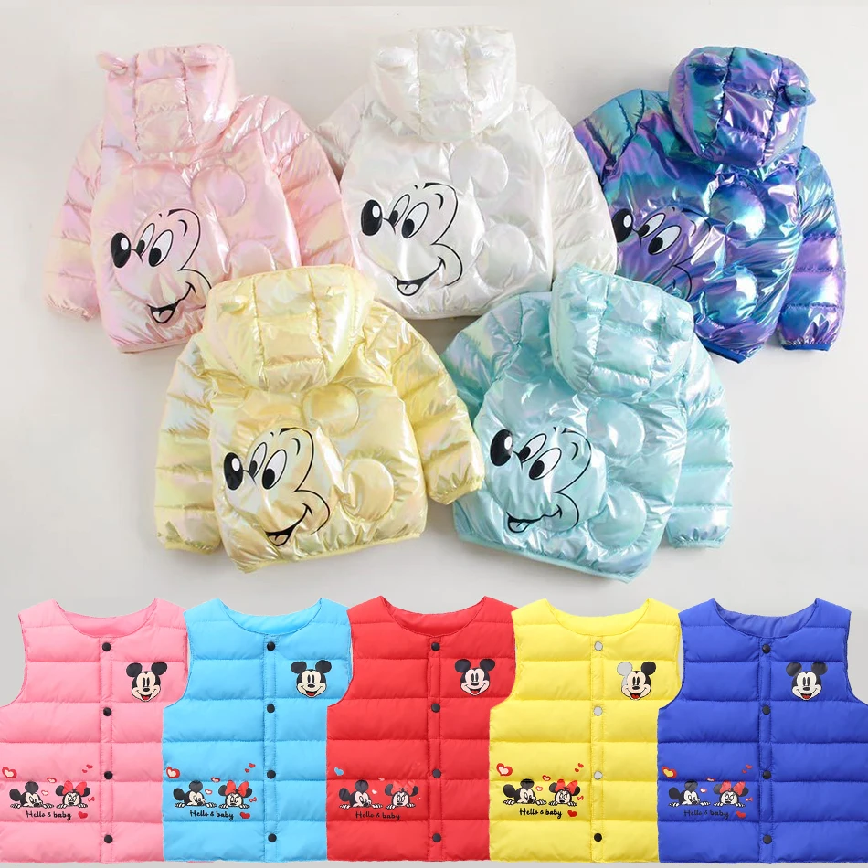 Детский пуховик с Микки-Маусом и Минни-Маусом, легкая теплая куртка...