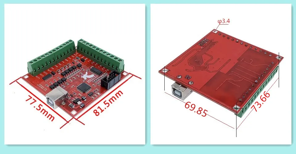 1) Support for 4-axis linkage, you can connect four stepper motor drives or servo drives;2) Maximum step-pulse frequency is 100 KHz, which is suitable for the servo or stepping motor;3) Support automatic probe tool4) Support Emergency input5) Support for limit switch6) Support for connecting electronic handwheel7) Need use external 24V DC power supply to isolate USB and external port, and to make the system more stable.8) Have 0-10V output port, you can use mach3 software to control the spindle motor speed.9) 4 general-purpose inputs, you can connect the limit switch, estop switch, probe switch, back to zero and other device10)4 general-purpose isolated relay drive output interface, can drive four relays for controlling the spindle starts, forward rotating and reverse rotating, pumps and other device;11)1 status LED, indicate connection status on the board.