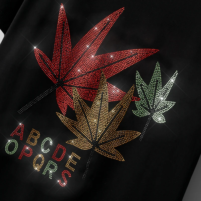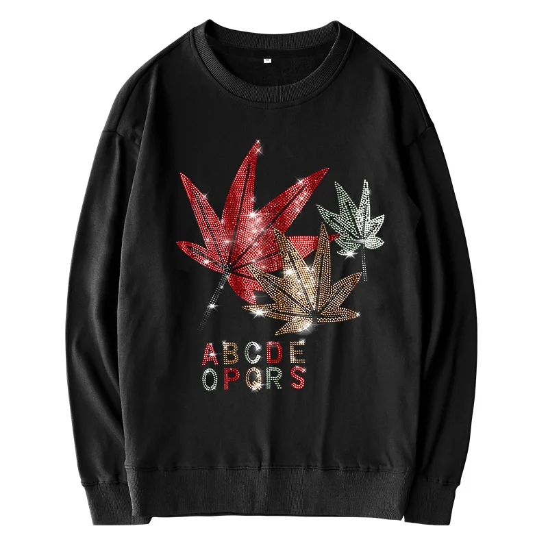 Весенне-осенние модные свободные кофты, женские креативные женские топы с рисунком кленовых листьев, горячие бриллианты, повседневные женские топы с круглым вырезом, пуловеры