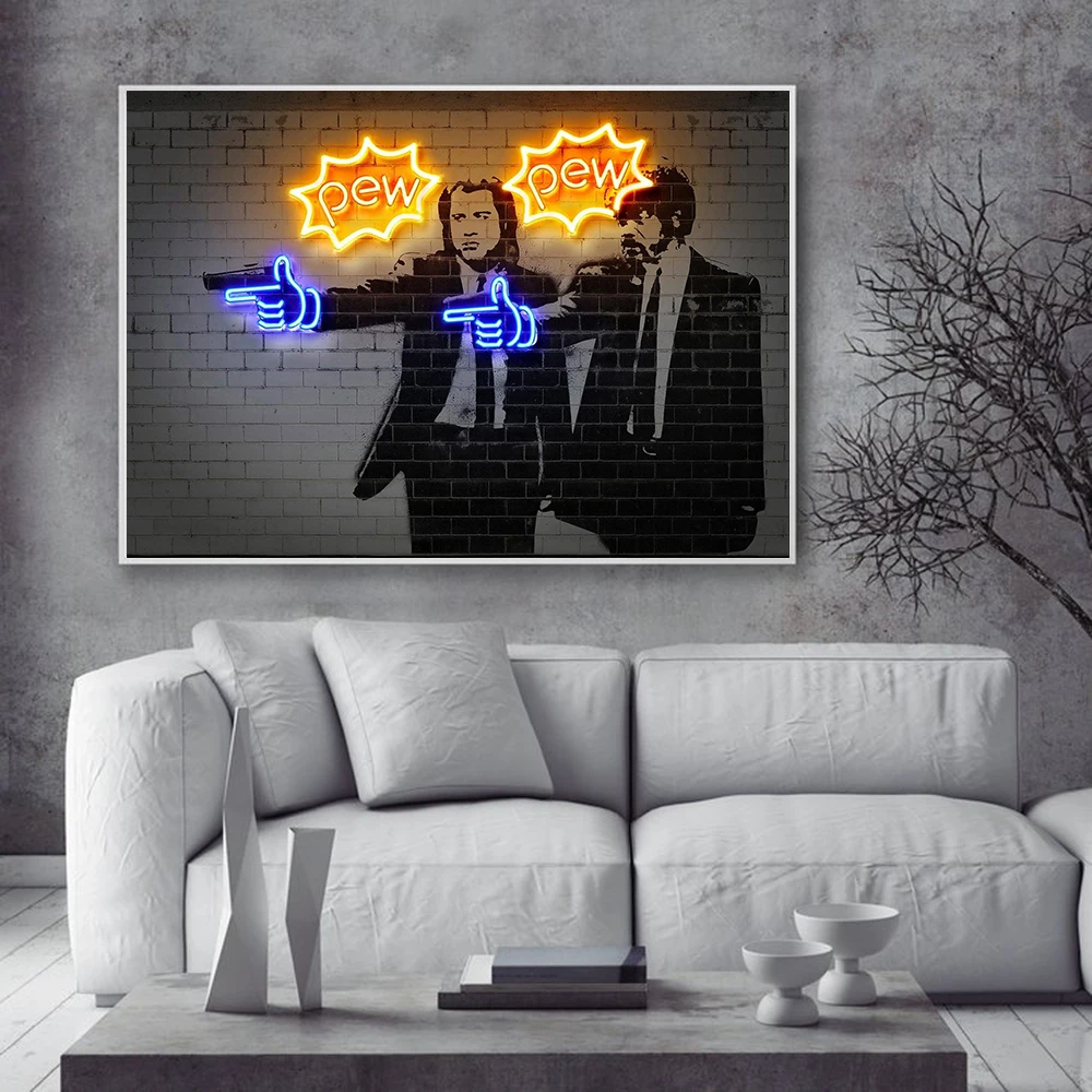 Скандинавский постер из фильма Криминальное чтение уличный граффити неоновая светильник Картина на холсте Печать Настенная картина Современная гостиная домашний декор