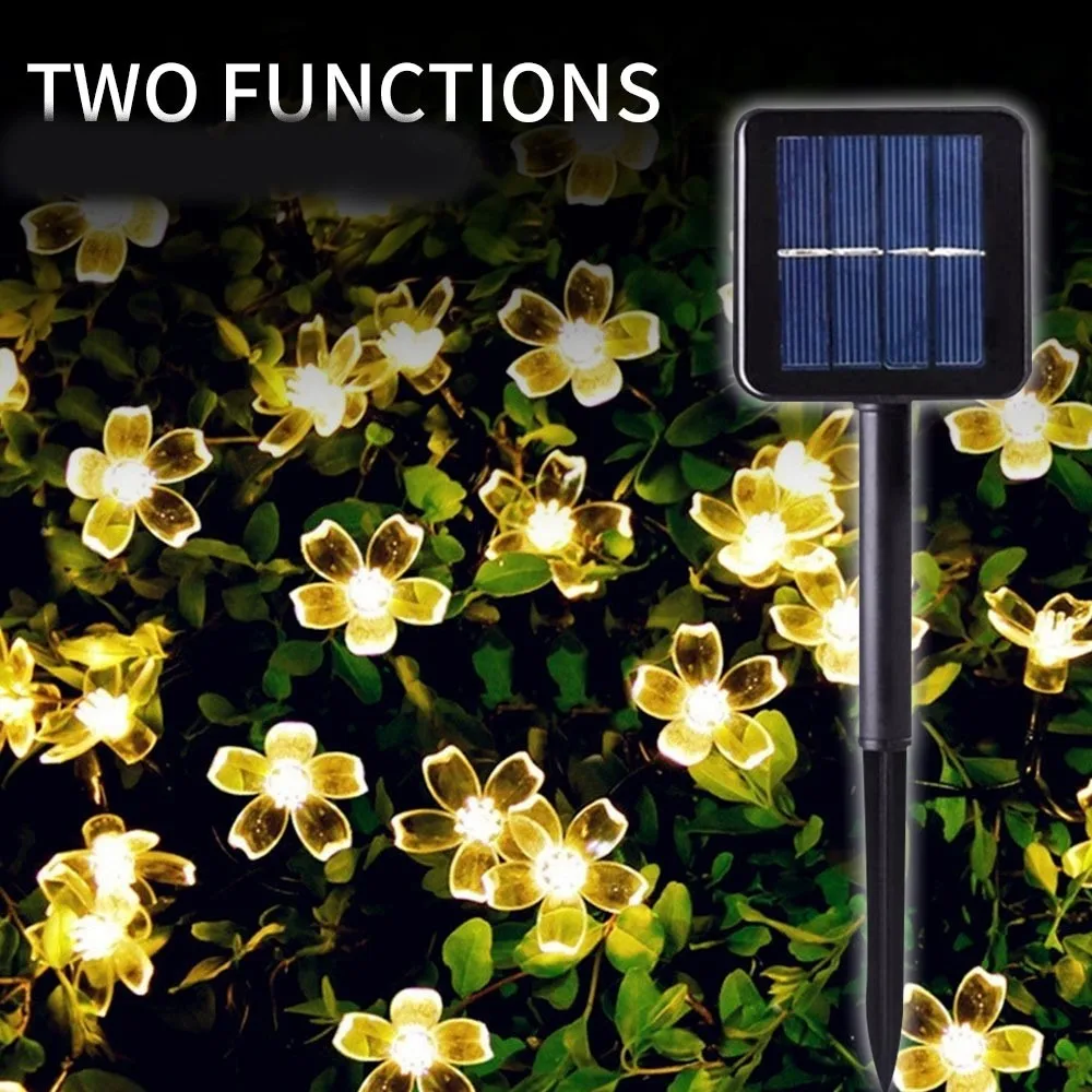 Светодиодная уличная гирлянда сакуры на солнечной батарее, водонепроницаемая лампа для газона, Рождественский и новогодний декоративный уличный светильник, 7 м, 50 светодиодов, IP65
