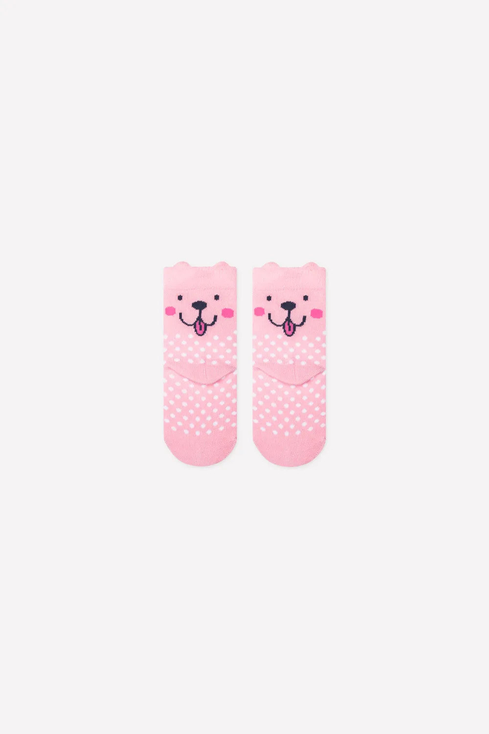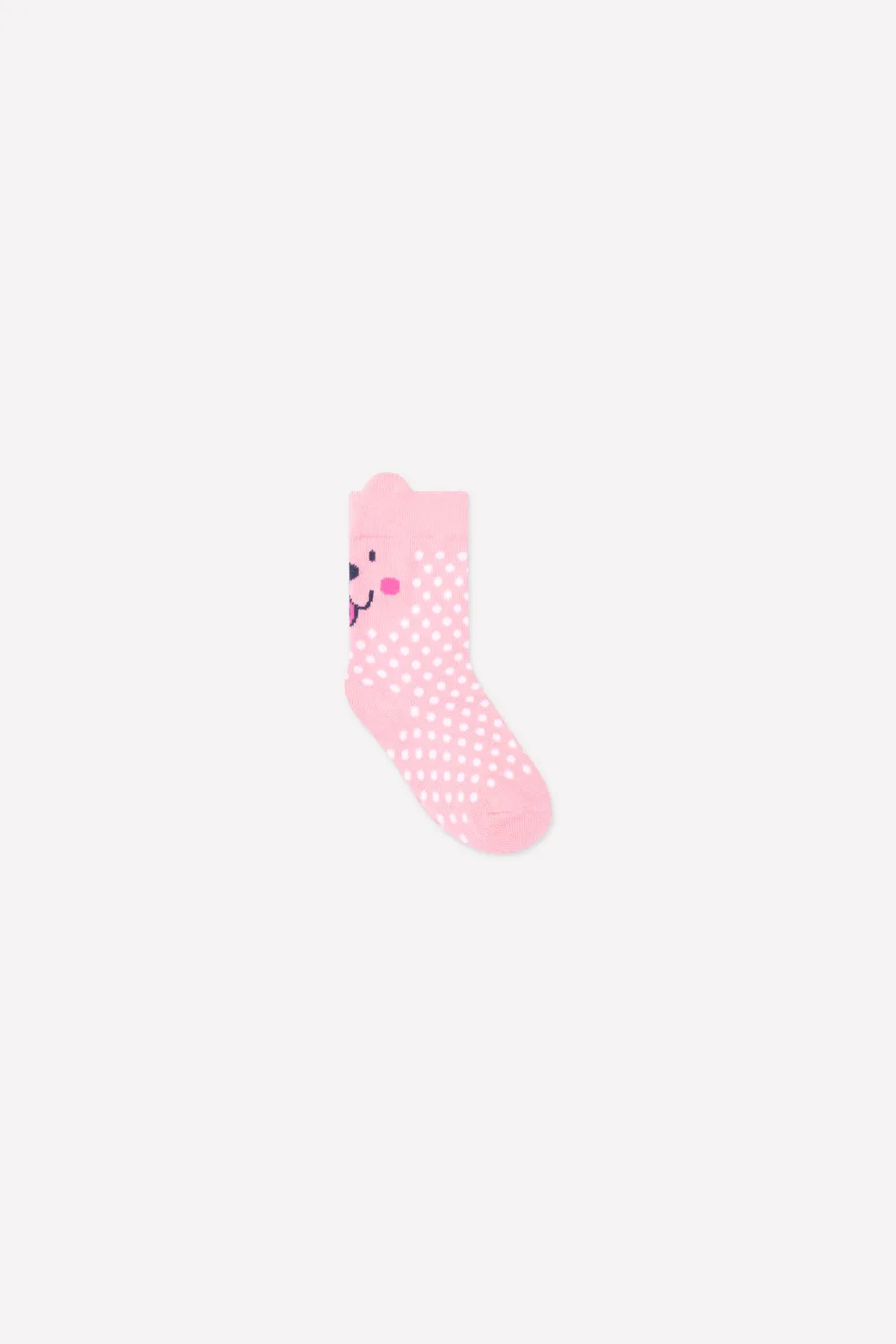 Описание: Удлиненные носки для девочки, из эластичного хлопкового трикотажа с узором. Вывязанный рисунок в области пятки. По верхнему краю резинка, декоративные ушки.