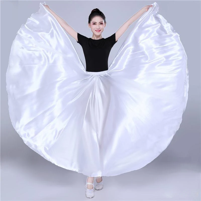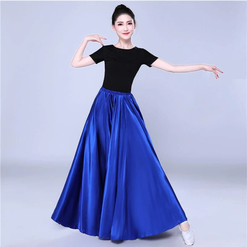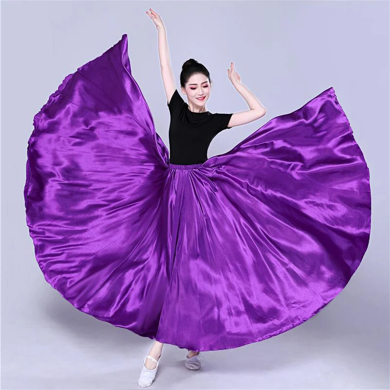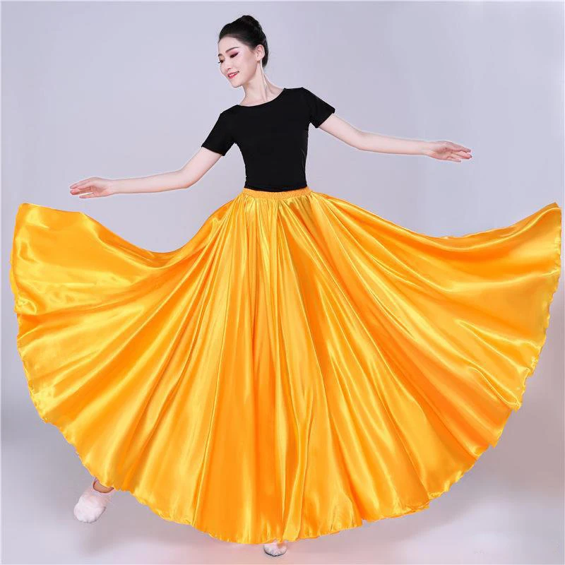 Женская атласная юбка для танцев на 360 градусов, длинная юбка для танцев, 15 цветов, однотонная фиолетовая золотистая юбка для танцев